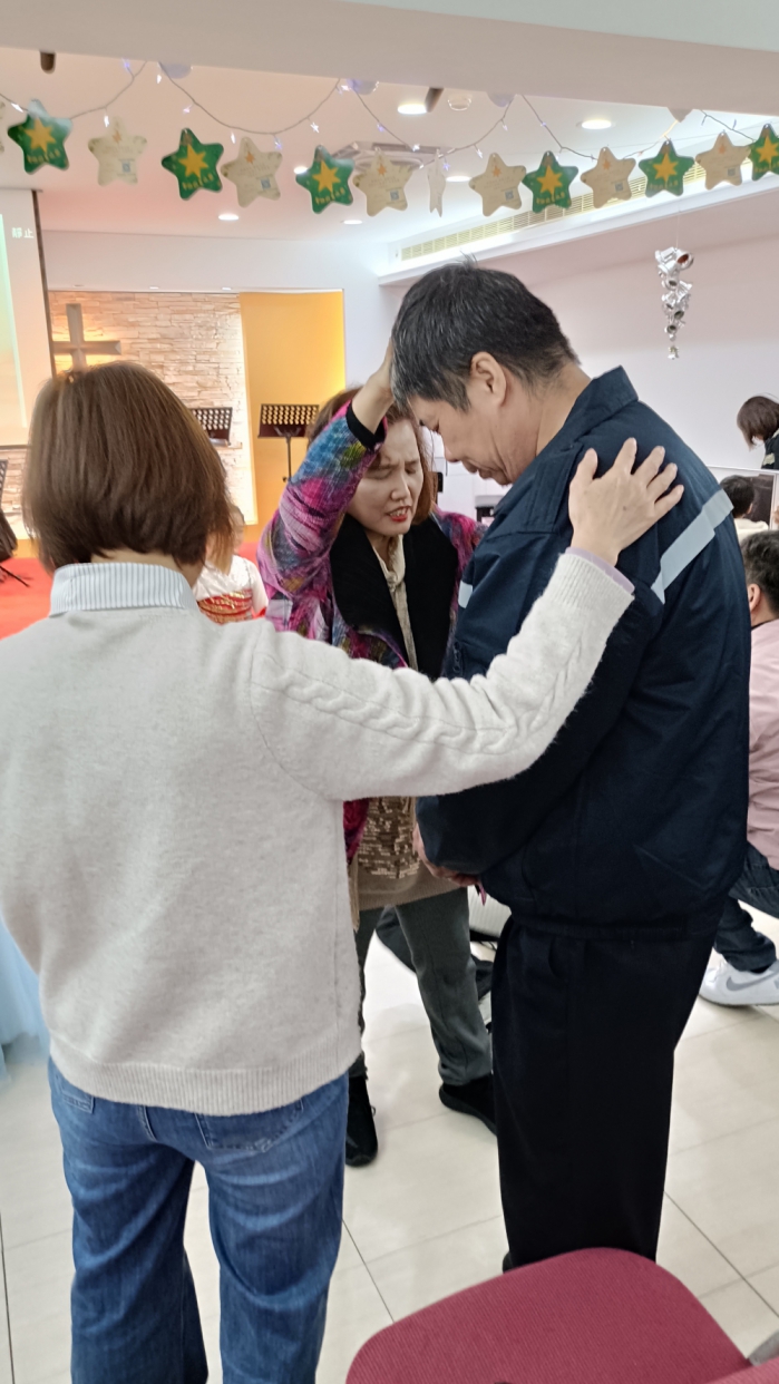 表演期間,金牧師也親自帶領其中一位團員Moon姊妹為大家做見證,自2018年起,她開始先後得了4個重症,乳癌,肺癌,淋巴癌及骨癌,目前共已得了九年,感謝主,由於她曾虔誠不斷的敬拜讚美主,有次忽聞上帝告訴她,我將醫治你,結果其中的肺癌,居然得到神的恩典治癒了,但命運卻總是捉弄人,又因為這些病症吃藥過多過重,不幸又得到肝癌,至今肚子膨脹且有腹水,常無法坐下,且因為化療使頭髮脫落,她只能戴著假髮,但仍然認真的跳舞,展現出無比毅力,她自己形容,此刻表演中會讓其精神抖擻,欣樂讓她更能專注無恙,她說感謝主,全能的神,祂是幫助我的神,讓我能用輕鬆愉悅的心,來繼續面對命運挑戰,所以欣然她志願參加跟隨到台灣宣教,在表演中屢屢感覺到耶穌祂一直在用寶血光照著我,一次又一次的激勵我,要我振作,感謝主,今天能來表演都是上帝的恩典,讓我還能跳與出國來宣教,我真的很高興。她的遭遇與見證,真讓全場感動不已,會末團體合照後,兩國的牧師師母同為病患及需要的主內家人分別輪流代禱,求神光照恩典憐憫醫治,希望他們早日康復,這真是一場受神祝福體恤的真實場面,非常溫馨感人,也讓人省思,神國的福音與願力救恩確實是無遠弗屆。