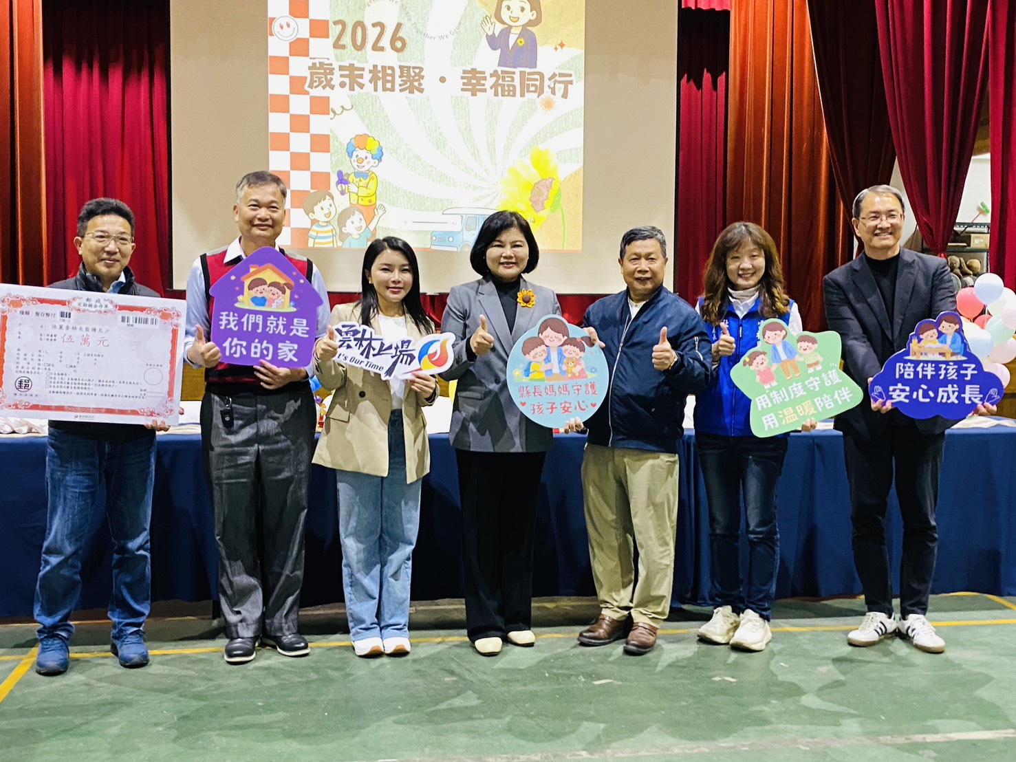 【記者 蘇峯毅/雲林 報導】雲林縣政府1日於北港鎮南陽國小舉辦「歲末相聚・幸福同行」關懷活動,邀集縣長張麗善、立委張嘉郡、縣府總顧問張清良、社會處長林文志、雲林家扶中心主委陳燦勲、主任廖志文、憶霖公司經理林新傑、廠長莫樹芳與縣長監護兒少、寄養家庭及親屬家庭到場,共同為孩子們送上歲末祝福,現場洋溢溫暖與希望。