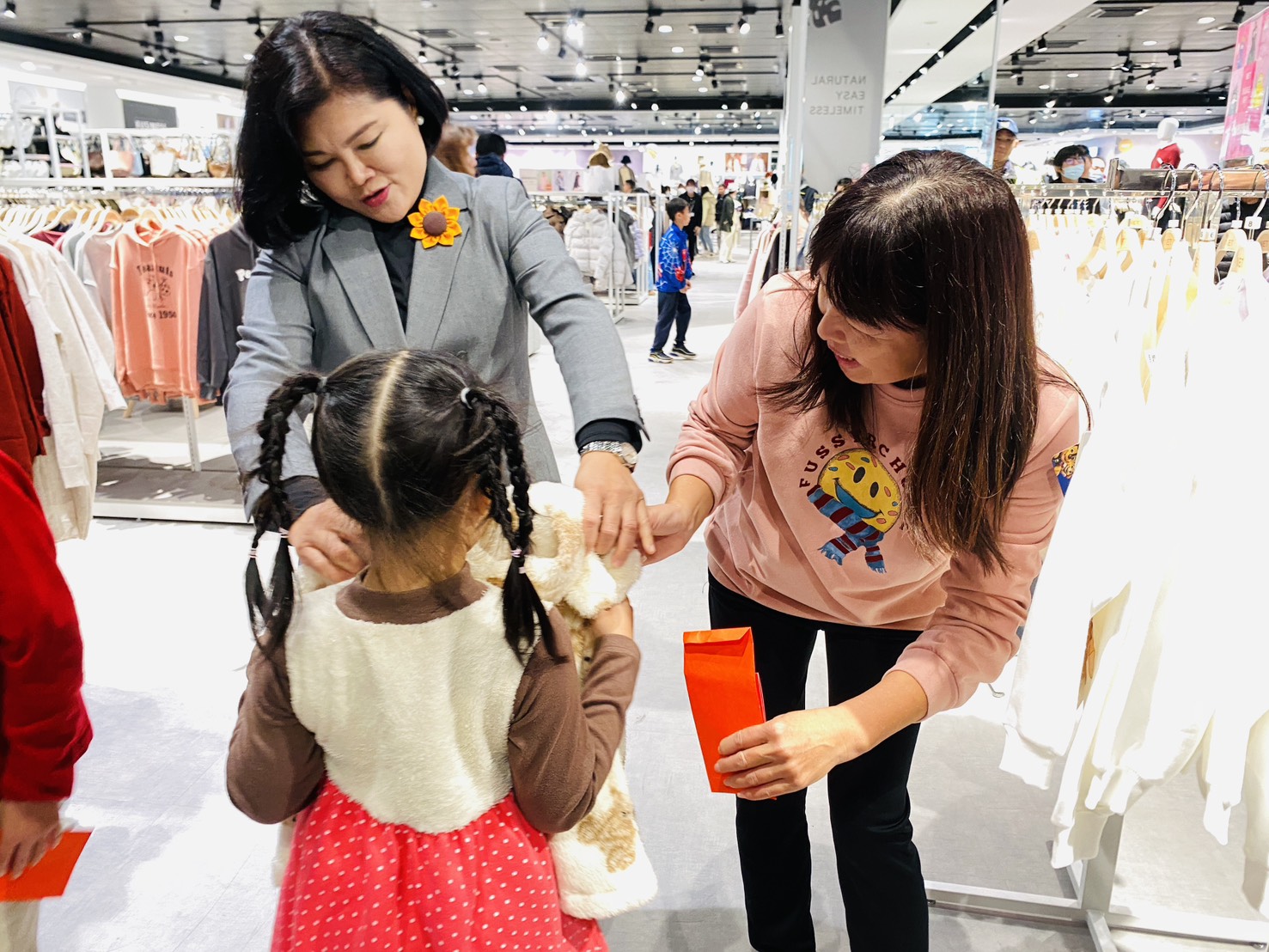 NET服飾品牌董事長黃文貞捐贈每位孩子2,000元提貨券,由張麗善縣長發送並帶領孩子們前往北港門市選購新衣。(記者蘇峯毅攝)