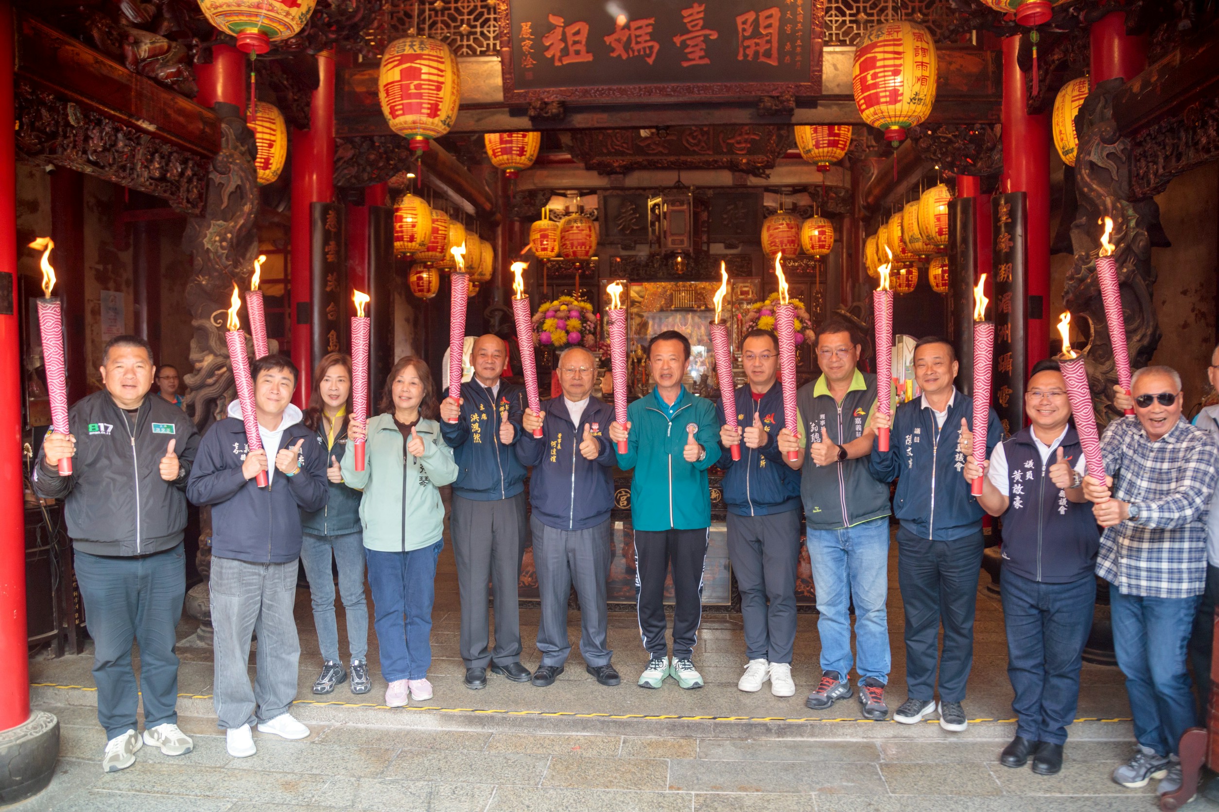 今天聖火母火取火儀式,由翁章梁、何達煌、新港鄉長葉孟龍、縣議員林秀琴、陳文忠、翁聰賢、黃啟豪、林岱杰等各級民代一同交接聖火。