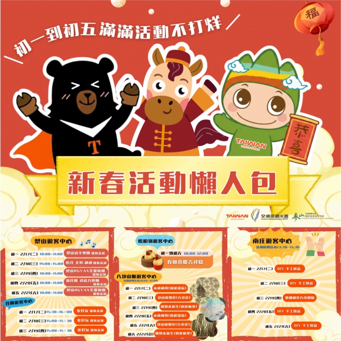參山處強調,為增添年節喜氣,大年初一至初三期間,轄內六大遊客中心同步啟動春節走春活動。民眾只需完成指定任務,即可獲得每日限量的「馬年好運錢幣」。此外,初一至初五期間,各遊客中心亦安排了豐富的DIY手作活動,無論是親子家庭或好友同遊,都能在走春過程中享受親手創作的樂趣,將好運帶回家。