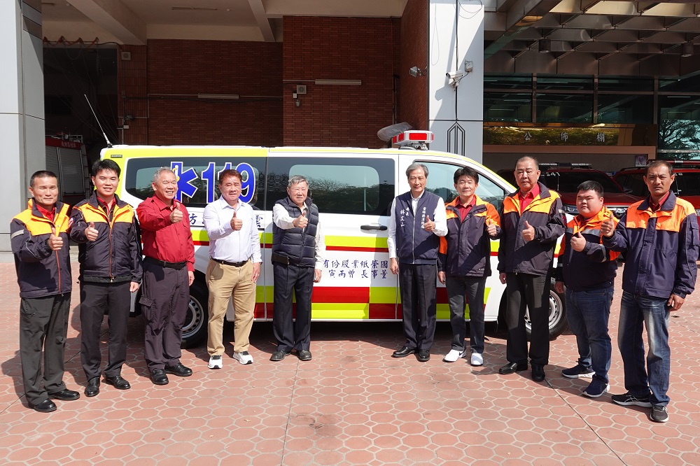 【記者 蘇峯毅/雲林 報導】國榮紙業股份有限公司捐贈雲林縣政府救護車1部,作為消防到院前緊急救護使用,協助提升緊急醫療品質與搶救人命效率。雲林縣政府為表達感謝之意,於10日上午在縣消防局舉行救護車捐贈儀式,由消防局局長林文山代表受贈,並回贈感謝狀及紀念品,感謝企業善行義舉。