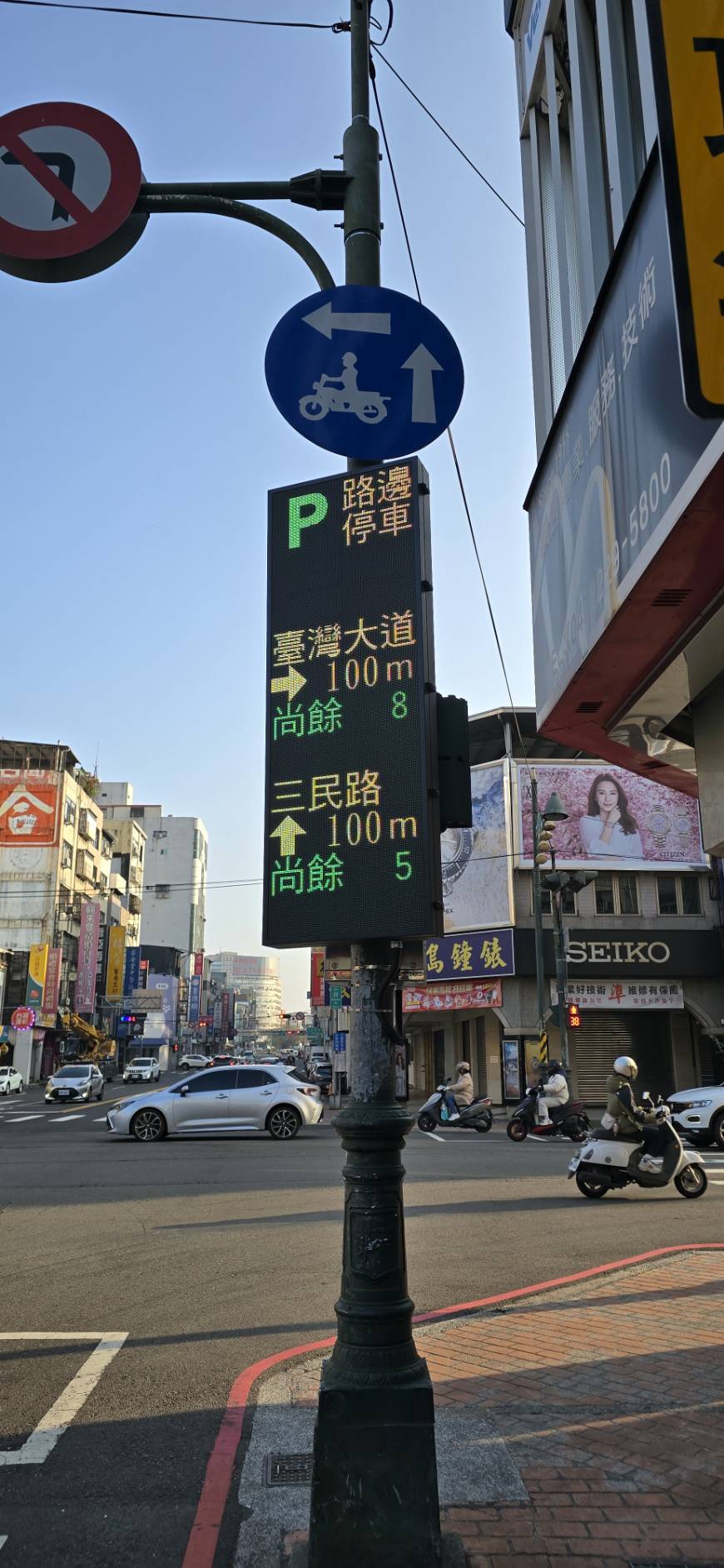 台中市市區主要幹道的關鍵路口、現今已裝置起醒目的電腦顯示看板、這些看板搭載了先進的感測技術與數據傳輸模組、透過與市內各公營、民營停車場及路邊智慧停車格的聯網、看板能即時精確地傳遞各地的可用停車資訊。