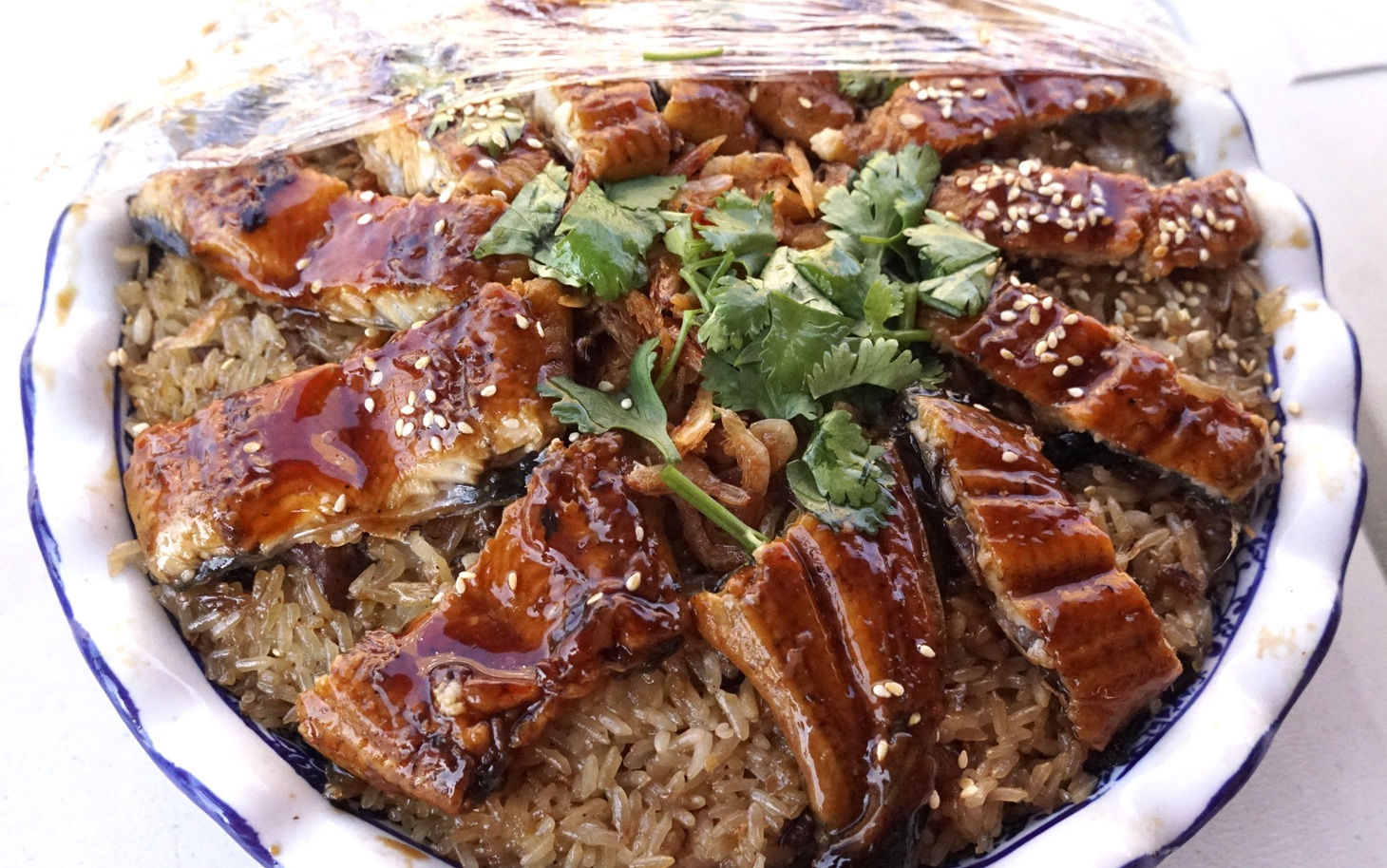 整桌菜色除了主角鰻魚外,還包含口湖在地盛產的文蛤、烏魚子及大蝦等食材,強調現撈尚青、產地直送,展現口湖農漁業實力與飲食文化底蘊。(圖/記者蘇峯毅攝)