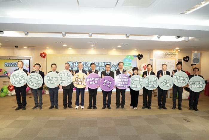 台中市衛生醫療永續發展倡議記者會活動,包括秘書長黃崇典、永續發展及低碳城市推動辦公室執行長李逸安、衛生局長曾梓展、台灣永續能源研究基金會董事長簡又新,中山附醫總院長蔡明哲、台中榮總副院長吳杰亮、中國附醫副院長楊麗慧、中國兒童醫院院長王志堯、澄清醫院總院長周思源、院長洪尚祐、大里仁愛醫院院長龔嘉德、國軍台中總院院長施宇隆以及台中市區域級以上醫院、15個醫事公協會、11家機構代表與各區衛生所代表共同出席見證。