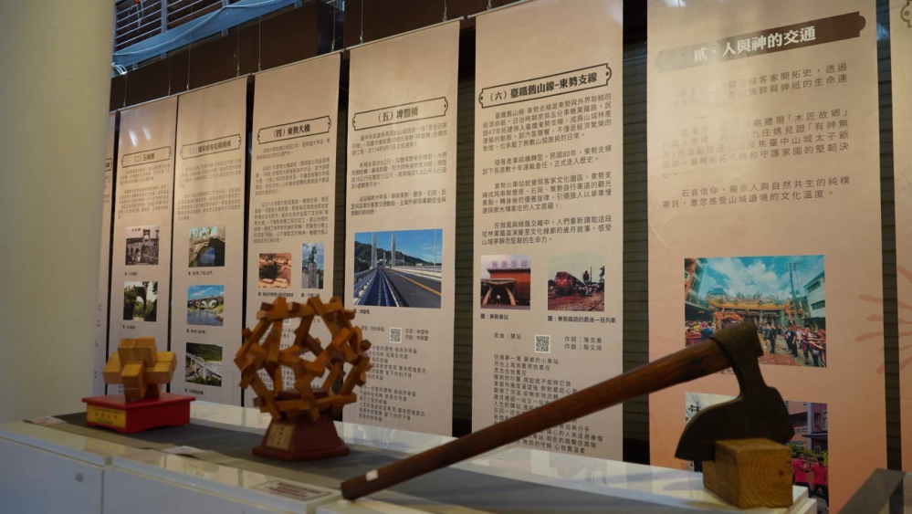 客委會主委江俊龍表示,東勢百年前曾是重要的林業交通樞紐,此次特展以「交通」為出發點,串聯「建設」、「信仰」與「生態」,帶領民眾認識橋樑與道路、信仰的香路,以及與自然共生的生態遷徙路徑,體驗東勢山城獨有的客家風情與土地溫度,並以「新生」單元呈現東勢嶄新樣貌,每一個面向皆象徵東勢的新(心)丁(肝)寶貝。
