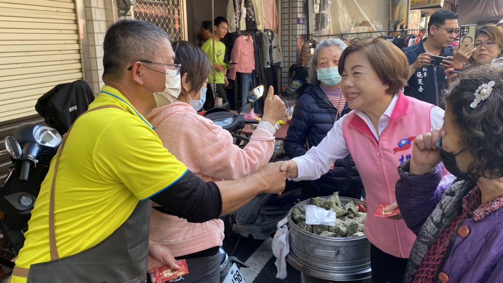 楊瓊瓔隨後轉往大雅市場掃街,台中市議員吳呈賢、吳建德號召大雅區13位里長到場陪同,沿途高喊「接到民調電話,唯一支持楊瓊瓔」,展現團結氣勢。許多攤商主動走出攤位與她互動,有人握手致意,有人拍照留念,也有民眾分享過去接受服務與協助的經驗,顯示其長期深耕地方的基層實力。