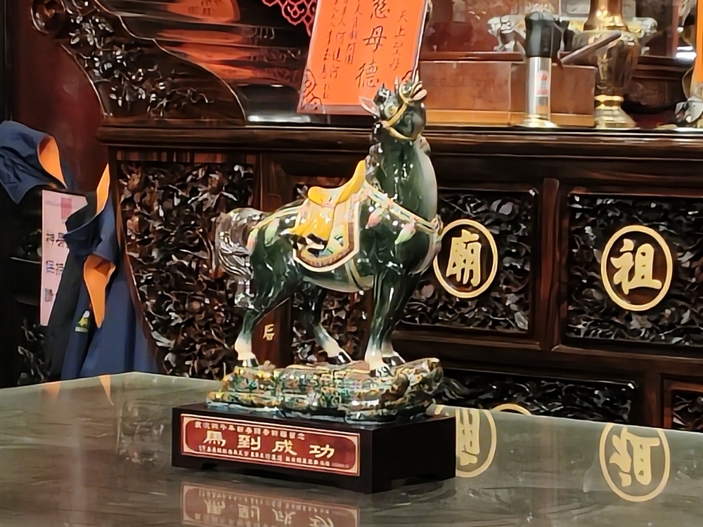 新港奉天宮搶頭香獲勝者,獲贈馬年交趾陶藝品​。(圖/記者任芳葵攝)