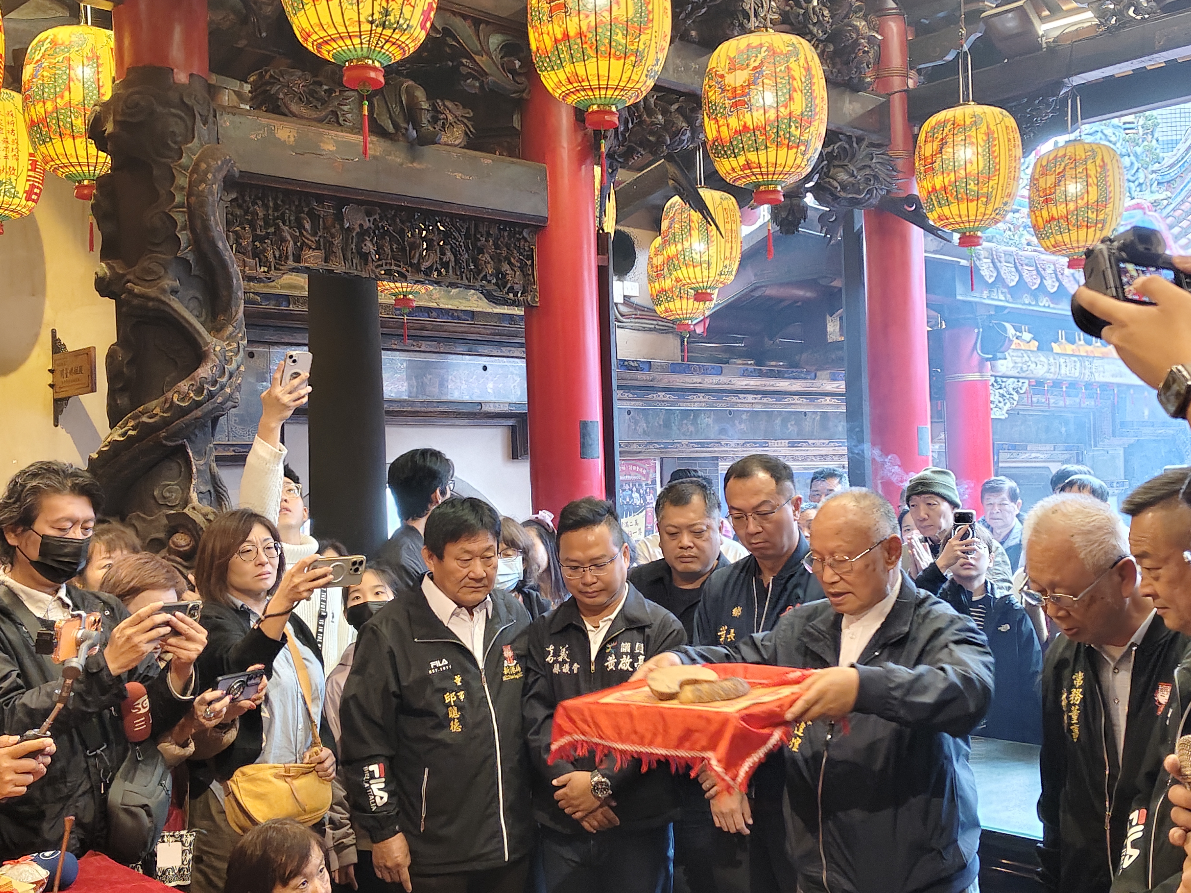 新港奉天宮董事長何達煌擲筶公籤,「國運」得二十六首(戊寅) 上上籤。(圖/記者任芳葵攝) 初四擲完公籤後,接下來新港就要緊鑼密鼓的開始準備農曆正月十五日(國曆3月3日)的元宵遶境活動。新港奉天宮一年一度的元宵遶境新港街面活動,早上7點30分點燃頭號炮,7點45分二號炮、8點媽祖轎起駕元宵遶境正式開始。今年適逢2026台灣燈會在嘉義,歡迎全國信徒來嘉義看燈會也不忘一同來新港鬧元宵,迎媽祖。