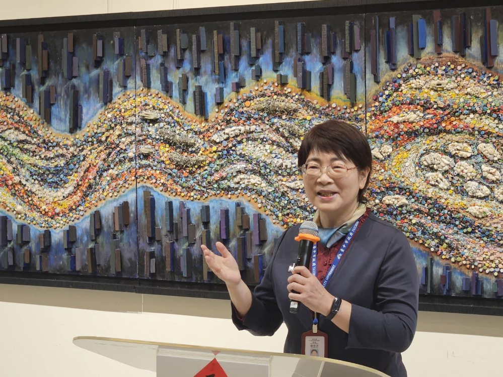 【記者張原銘、張皓傑台中報導】金馬迎春,臺中市大墩文化中心在新歲之際迎來一場極具「重量級」的藝術盛宴。鑲嵌藝術大師簡源忠教授以《若水 靜謐而流動》為題,於臺中呈現融合細膩工藝與生命哲思的鑲嵌藝術創作展。文化局長陳佳君21日出席開幕式,並接受簡教授捐贈作品〈祈福-平安吉祥〉,同時見證首度公開、歷時5年、以250萬片碎石、彩色玻璃與琉璃完成的巨幅馬賽克畫作〈母親之河—麻園頭溪〉,為城市土地與時間留下深刻而靜謐的藝術印記。