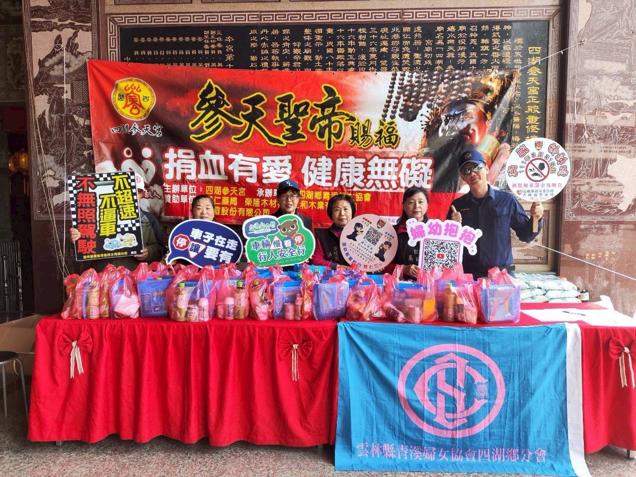 【記者 蘇榮泉/雲林 報導】為迎接三八婦女節並提升社會對婦幼安全的重視,雲林縣警察局臺西分局日前前往四湖鄉參天宮,結合當地舉辦的捐血公益活動設立宣導攤位,向民眾宣導婦幼保護相關法令與求助管道,透過寓教於樂方式深化民眾安全意識。
