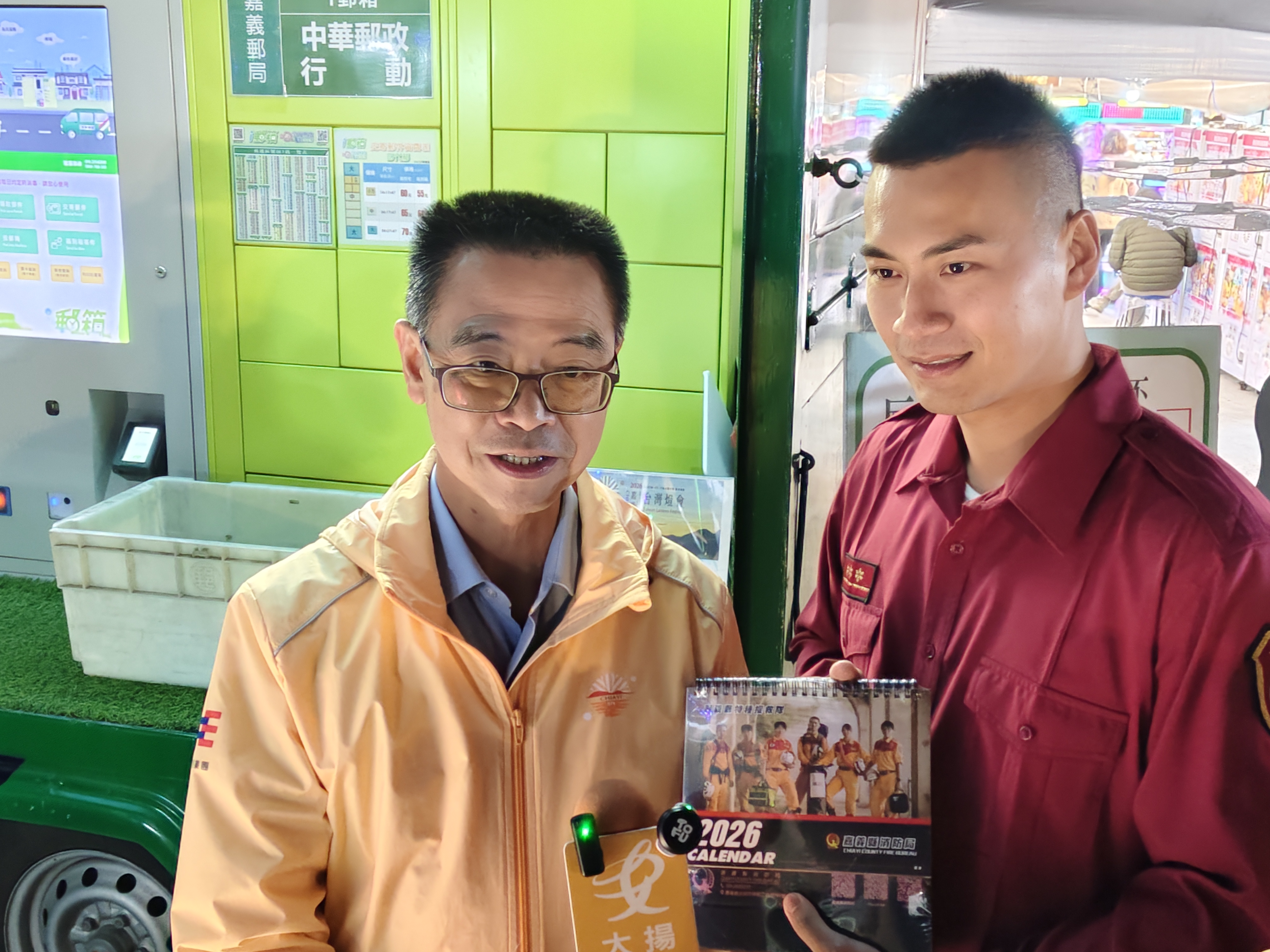 (記者任芳葵嘉義報導) 2026台灣燈會熱鬧在嘉義縣盛大登場,嘉義郵局於燈會市集區設置特色行銷攤位,嘉義縣消防局猛男主角搭配藝人逸祥與郵局之花,現場拍照打卡宣導吸引熱潮,消防局長蔡建安也到現場打氣,許多遊客提前半小時抵達排隊,熱門集郵商品及特色贈品深受民眾喜愛,成為燈會市集區人氣攤位之一。