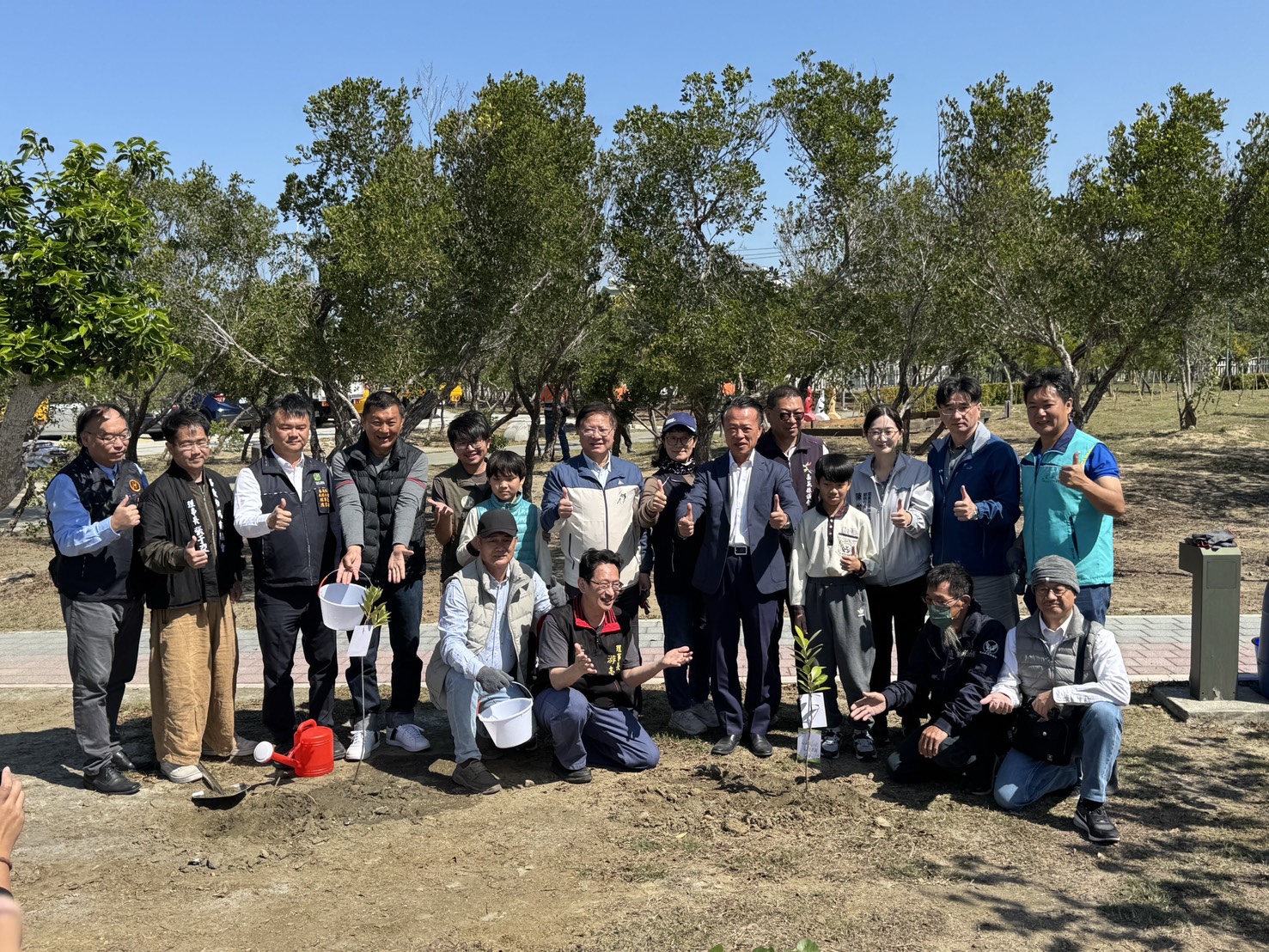 翁章梁縣長親自與布袋國小師生一起種樹,表示一個現代化進步的城市,樹木是重要的指標之一,且樹木是需要時間才能成長,不是速成品,更要在種植後細心照顧維護,才能成就環境綠蔭。去年丹娜絲颱風造成多處嚴重災害,多數地區樹木也倒塌損傷,今年植樹節希望透過行動,邀請大家多多種樹,合力營造美好環境。