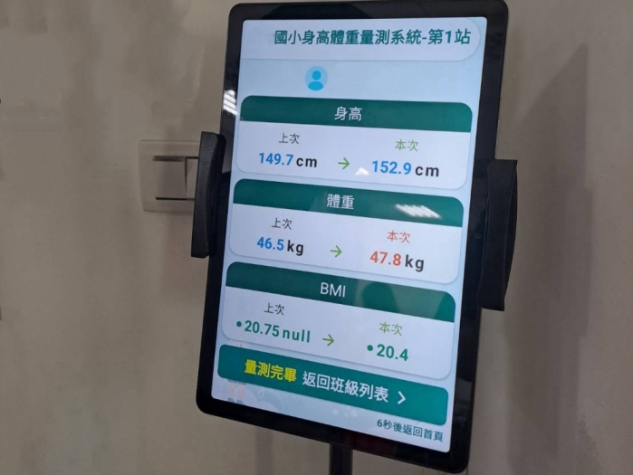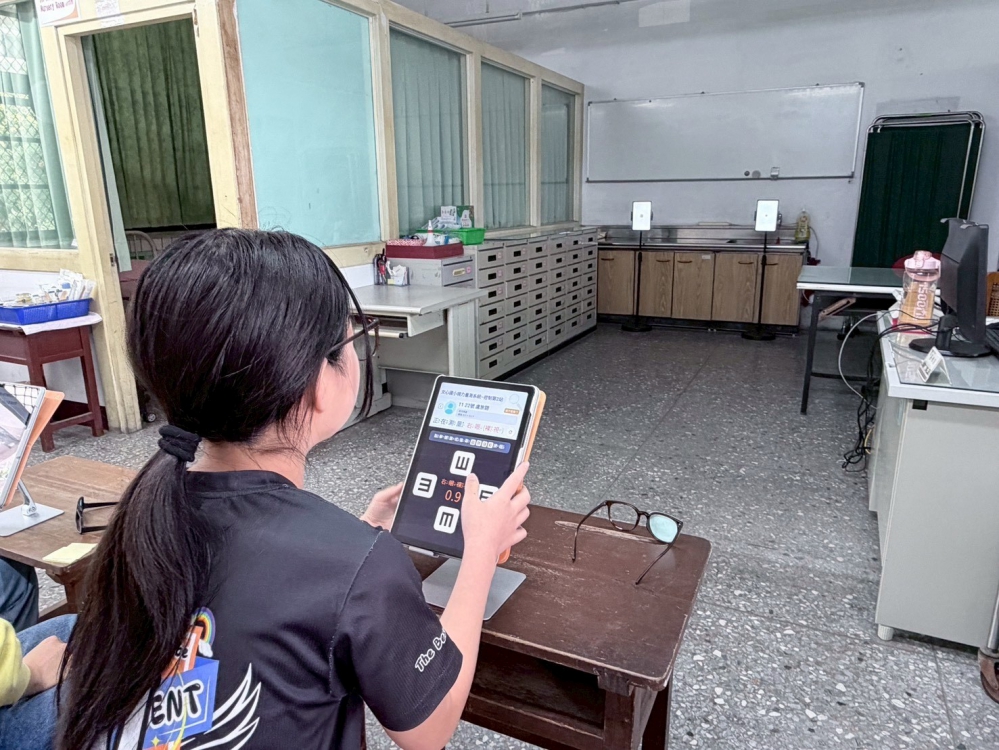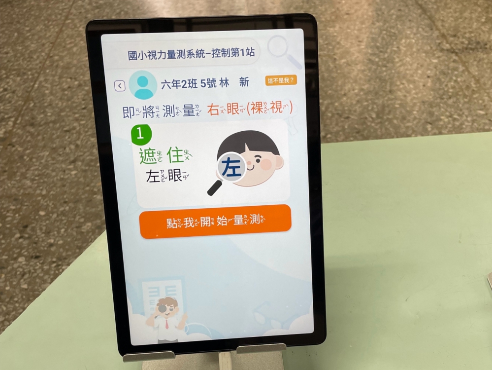 教育局說明,目前參與試辦的10所學校已全面配發自動化設備,包含兩組全自動視力檢查機及一組全自動身高體重機,系統搭配平板電腦進行身分識別,學生僅需在觸控螢幕點選名單即可啟動量測。