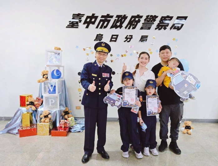 【記者林重鎣台中報導】為了迎接即將到來的四月兒童節,並體恤同仁平日辛勞,臺中市政府警察局烏日分局21日首度舉辦專屬警察同仁及其家屬的「小小波麗士榮耀體驗營」。警察爸爸、媽媽們難得換下嚴肅的執勤面孔,與孩子們在工作場域共創美好的親子回憶,場面溫馨動人。