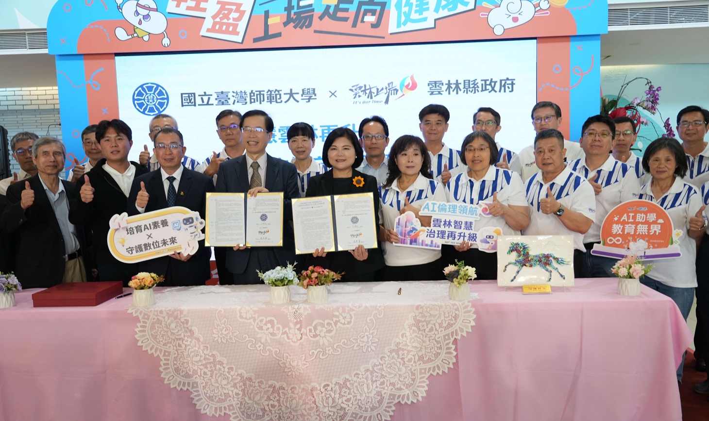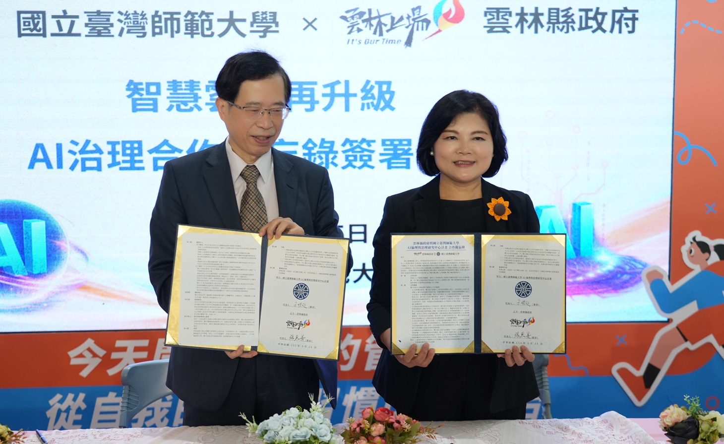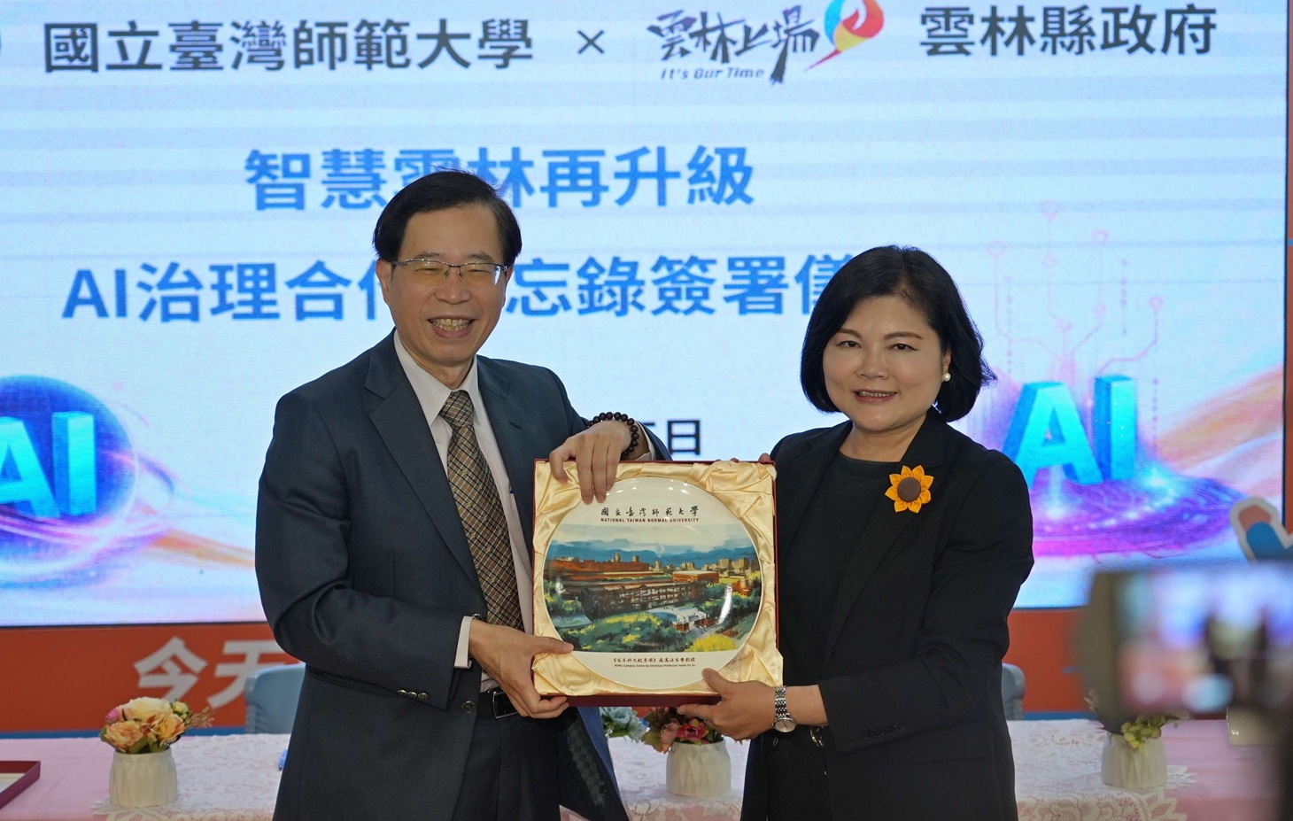 雲林縣政府與國立臺灣師範大學共同簽署合作備忘錄,攜手推動AI治理。(圖/記者蘇峯毅攝)