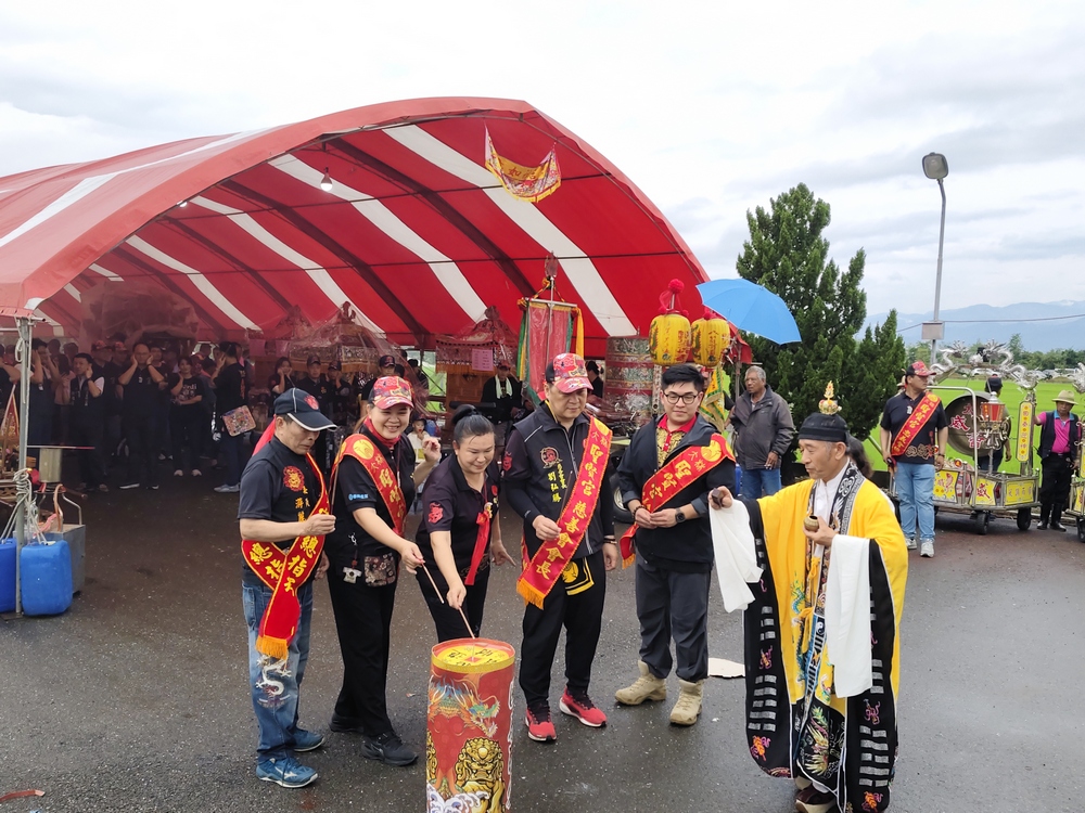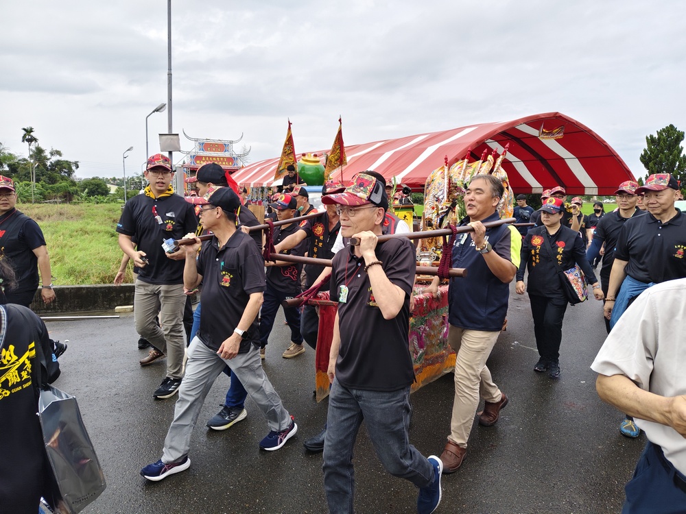 市政府勞青處長林家緯及民雄鄉代會主席涂文生等,隆重點燃一、二、三號炮後,陣頭與神轎隨著號角響起正式啟程。