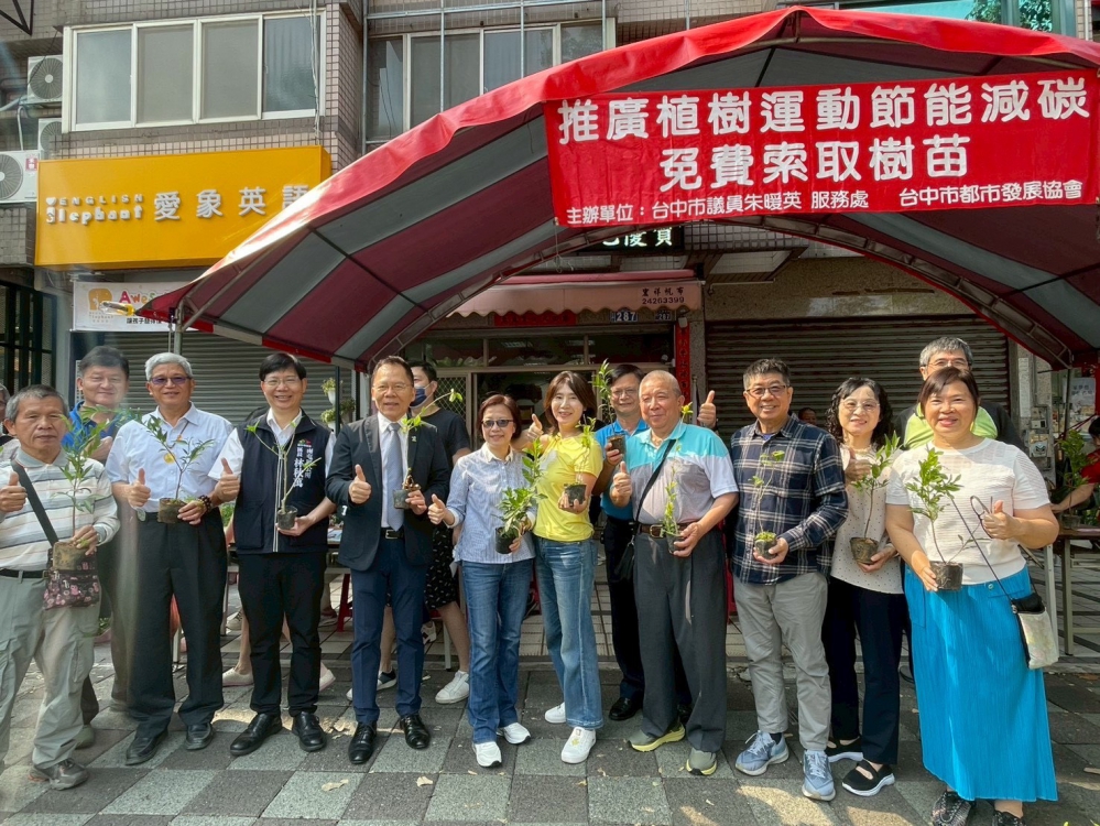 【記者林獻元台中報導】為推廣綠色環保理念、提升市民生活環境品質,國民黨台中市議員朱暖英服務處11日於南屯區永春東路服務處舉辦「免費發放樹苗」活動,提供桂花、杜鵑、山黃梔、朱槿、竹柏等多種適合居家種植的樹種,開放民眾免費領取,吸引不少市民踴躍參與,現場氣氛熱絡。