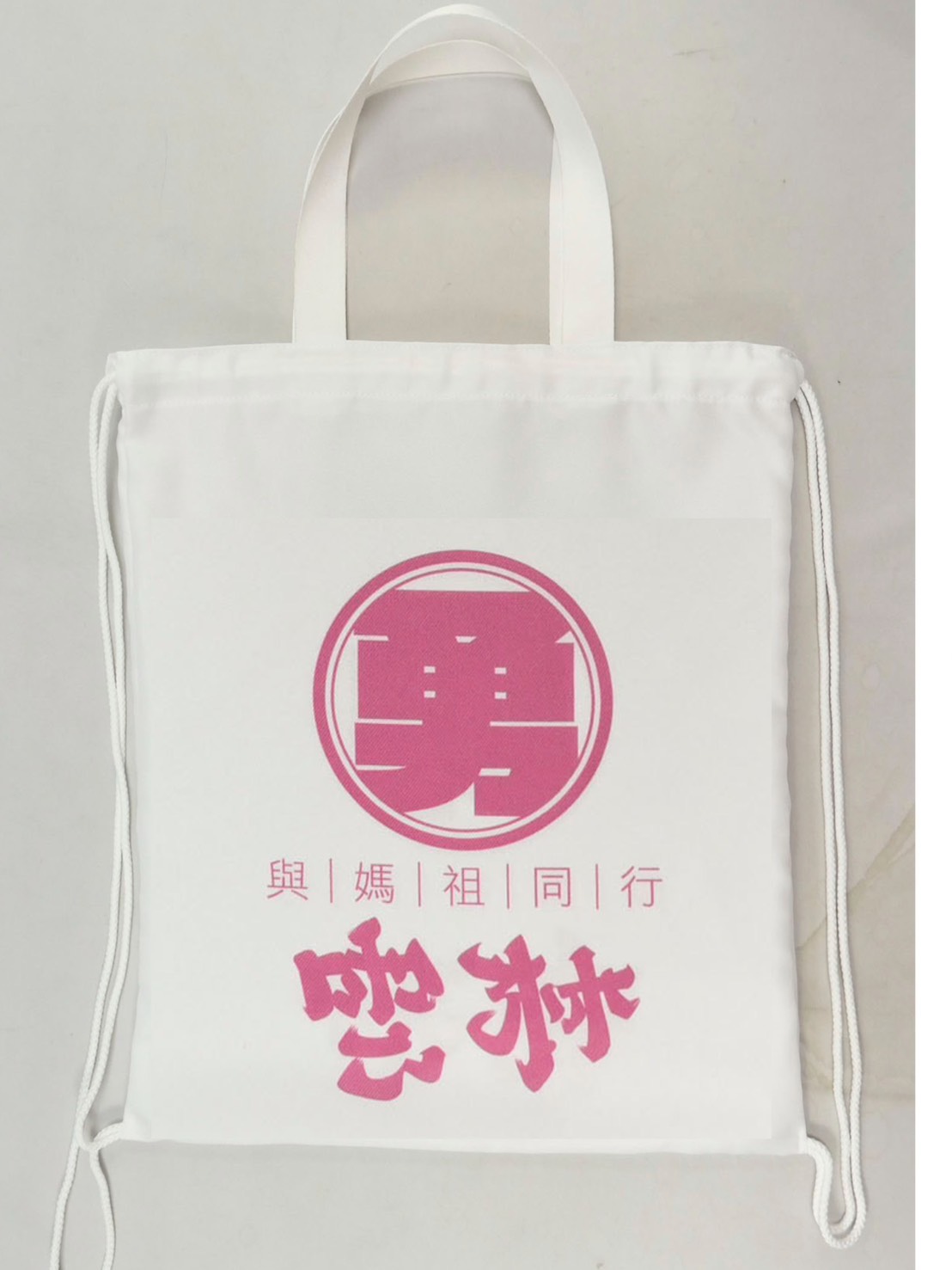 在設計巧思上,束口袋融入「勇」字精神,並結合雲林翻轉字樣,呈現橫看「雲林」、直看「嘉郡」的視覺效果,象徵勇氣、信念與地方連結,別具意義。