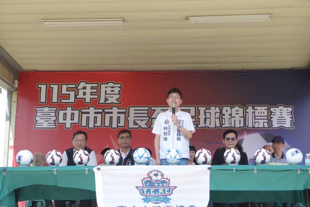 115年台中市市長盃足球錦標賽12日開幕典禮,教育部政務次長張廖萬堅、中市府運動局長游志祥、教育局副局長郭明洲、台中市議員暨台中市體育總會足球委員會主任委員林祈烽、台中市體育總會足球委員會委員蔡永傑、惠文高中校長陳建銘、崇倫國中校長賴朝榮、協和國小校長簡雅雯、國安國小校長謝淵智等均出席活動;立委何欣純亦派員參與共襄盛舉。