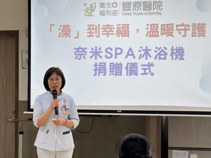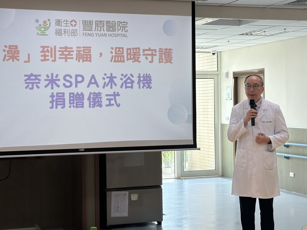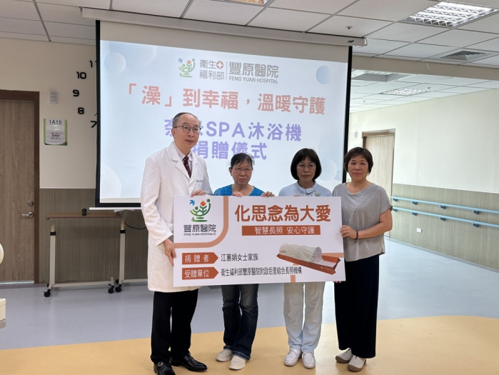 豐原醫院指出,此次捐贈別具意義,發起人為院內護理主管江蕙娟主任,其雙親於去年及今年初相繼住院,生命最後階段受到院內醫療團隊專業照護與溫馨陪伴,得以安詳離世,江主任由照顧者、家屬,轉而成為捐贈者,將個人生命經驗化為實際行動,以父母名義捐贈智慧沐浴設備,盼將思念化作延續照護的力量。