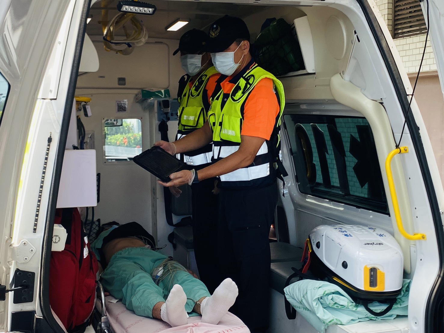 中國醫藥大學北港附設醫院於全縣18輛配置12導程心電圖機的救護車導入AI判讀系統,可於數秒內完成分析心電圖數據,協助第一線人員快速辨識急性心肌梗塞等重大心血管疾病。(記者蘇榮泉攝)