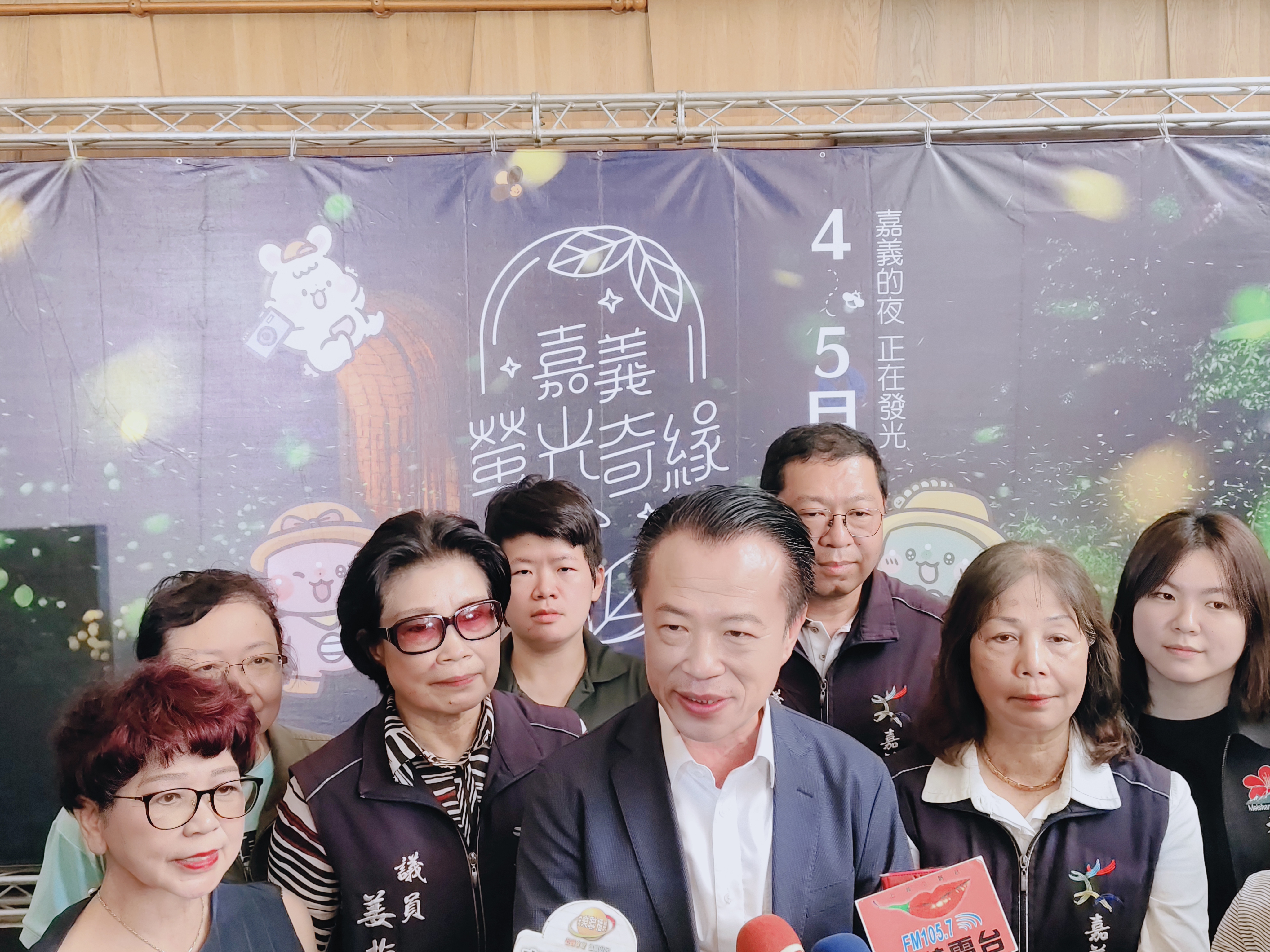 阿里山區螢火蟲種類數量全台之冠,縣長翁章梁親自宣布嘉義縣「螢光奇緣」螢火蟲季正式啟動。(圖/記者任芳葵攝)