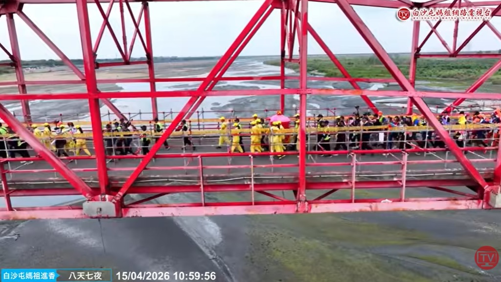 【記者 蘇峯毅/雲林 報導】年度宗教盛事白沙屯媽祖進香持續進行中,今(15)日邁入第3天行程,清晨5時自彰化員林一處汽車展示中心起駕,進香隊伍持續南下推進,徒步總里程正式突破100公里,吸引大批香燈腳一路隨行,場面盛大。