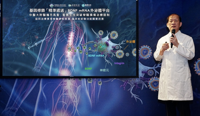 【記者張原銘、張皓傑台中報導】中國醫藥大學附設醫院近日與長聖國際生技及聖展生技合作,開發一項以外泌體為基礎的遞送平台,應用於脊髓損傷治療研究。相關成果已刊登於Journal of Nanobiotechnology。