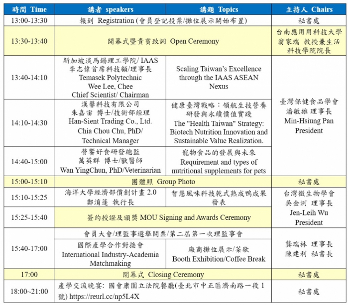 2026台灣愛鮮食安保健聯盟年會暨產學論壇,於4月16日13時至17時在張榮發基金會國際會議中心1001室盛大舉行,晚間18時至21時並於國會康園立法院餐廳舉辦產學交流晚宴,匯聚產官學界代表,共同探討食品安全與健康產業發展趨勢。