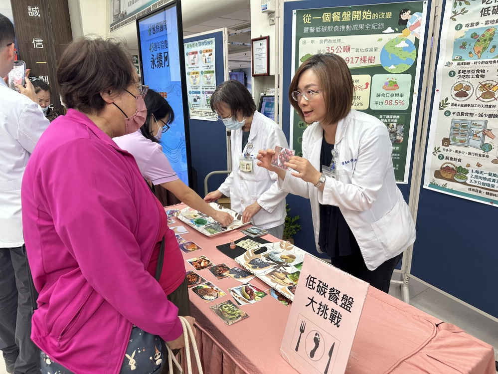 其中總務室以生物醫療廢棄物為主題,展示醫療廢棄物實品及再製成果,推廣資源循環與正確分類觀念;藥劑科宣導廢棄藥品回收,衛教民眾正確處理過期或未使用完藥品方式;營養科則以低碳飲食為主題,透過餐盤展示與綠生活成果分享,推廣健康飲食與環境永續並行理念。