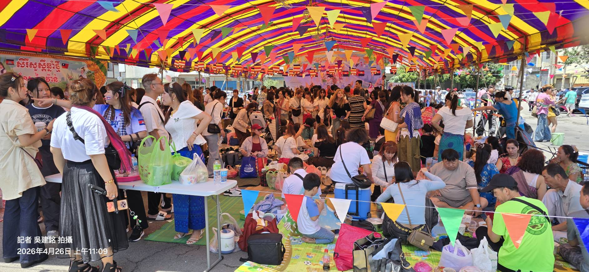 活動開始、慈悲的柬埔寨僧侶便在會場中為所有參與者進行了莊嚴的祈福儀式、為節日增添了一份神聖與祥和的氣息、也藉此祈求來年國泰民安、家庭幸福、隨後整個會場便被濃郁的柬埔寨風情所籠罩、精緻的柬埔寨傳統裝飾、如色彩斑斕的布藝、手工編織的飾品、與悠揚動人的傳統柬埔寨音樂交織在一起、營造出一個彷彿置身於傳統高棉土地上的沉浸式體驗、參與者們、特別是眾多柬埔寨新娘、身著鮮豔亮麗的民族服飾、如同盛開在異鄉的嬌豔花朵、為現場增添了無限的生命力與視覺饗宴。
