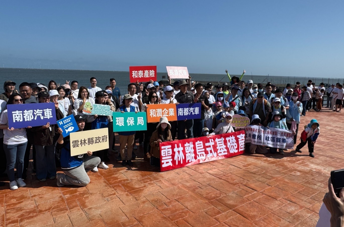 雲林離島服務中心同仁、南都汽車員工及其家屬,眾人頂著晴朗天氣沿著海岸線撿拾垃圾,從沙灘中清出廢棄漁網、塑膠容器及保麗龍等常見海廢。(雲林離島服務中心提供)主辦單位指出,麥寮海岸因地形與潮汐影響,長期容易堆積海漂廢棄物,除仰賴日常清理維護外,更需結合企業與民間力量共同投入。雲林離島服務中心平時即與離島產業園區麥寮區內企業,如台塑、長春及大連等廠商合作維護環境,此次再結合民間企業力量,擴大環保行動效益。