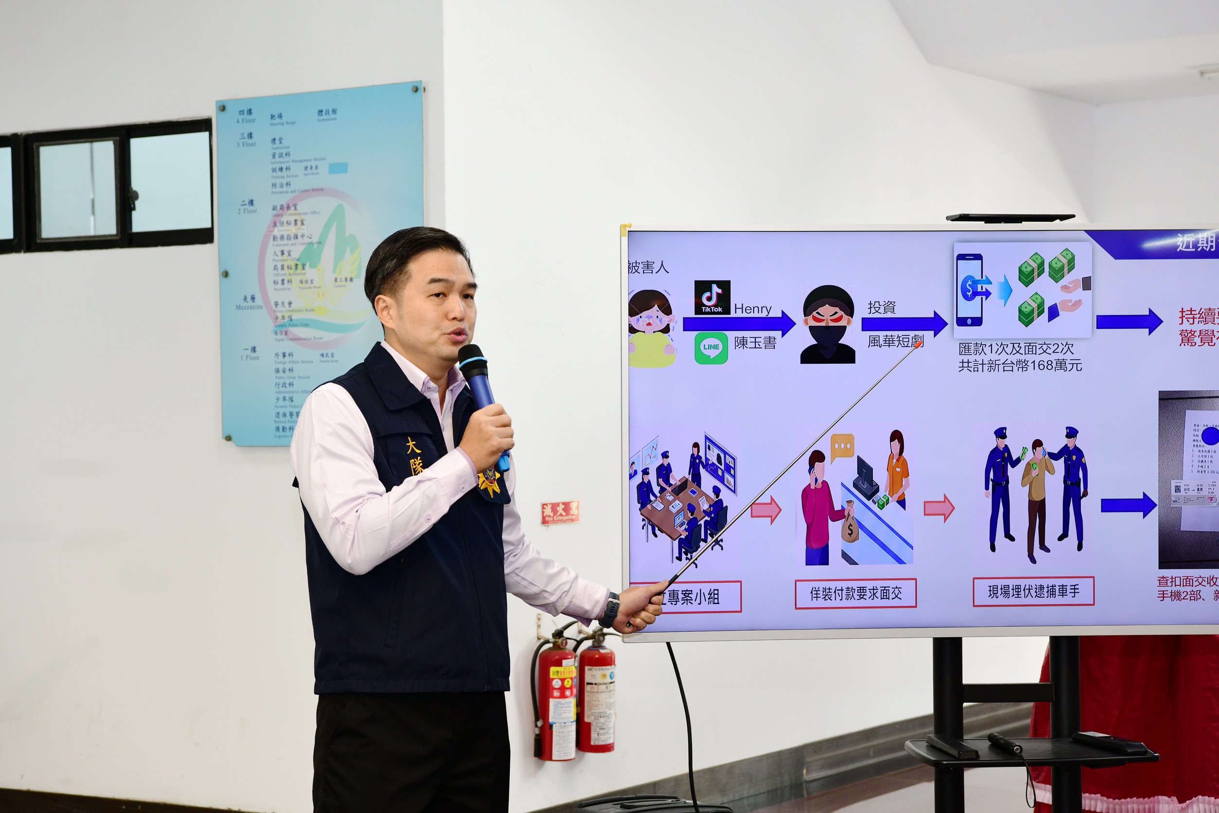 (記者任芳葵嘉義報導)嘉義縣警察局積極打詐展現成效,刑大科偵隊29日宣布偵破投資短劇影視版權詐財案,被害人稱透過抖音交友加入LINE暱稱「Henry」、「陳玉書」,並依照歹徒投資風華短劇影視版權,匯款1次及與詐騙集團自稱外派專員之車手面交2次,共計投入新台幣168萬元,後續詐騙集團仍持續要求被害人投入資金新臺幣60萬元,被害人驚覺有異遂報警求助,隨即成立專案小組查辦偵破。