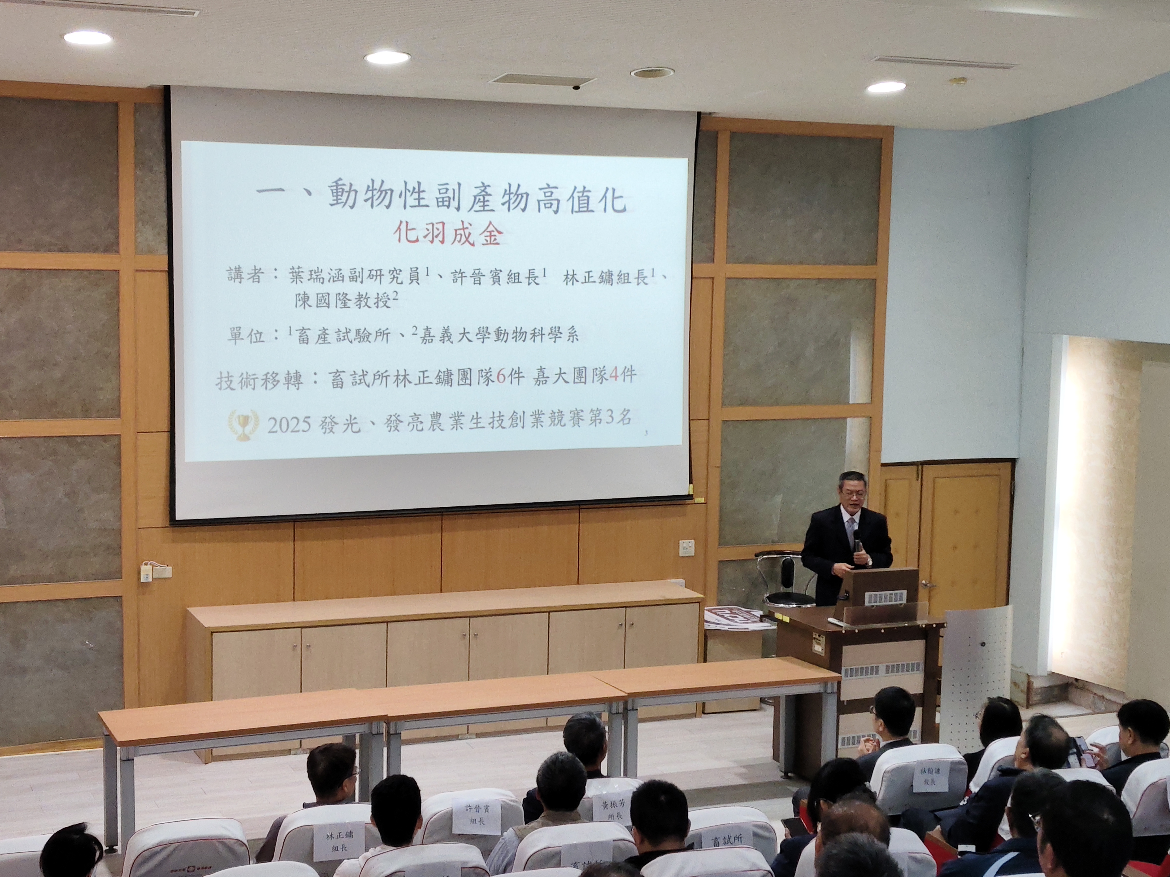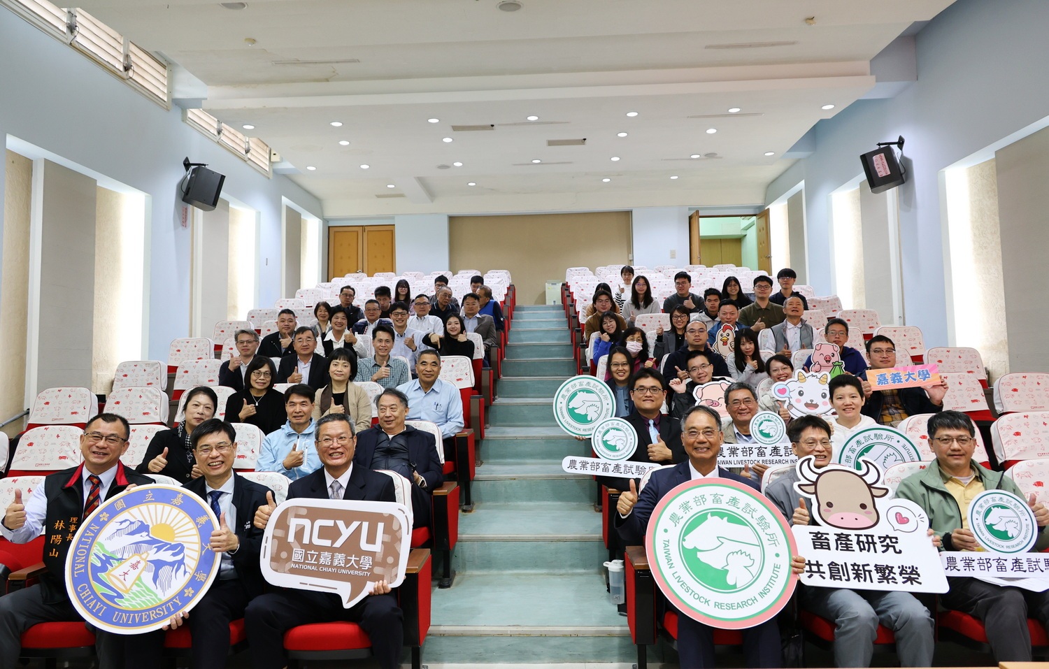 林翰謙校長表示,嘉大與畜試所同為我國農業科技發展重鎮,透過「永續創生聯合研究計畫」的實質運作,雙方團隊成功將嘉大的微生物發酵專長,與畜試所深厚的動物營養實務經驗完美結合。本次發表的成果由嘉大農學院動科系陳國隆教授團隊與畜試所許晉賓研究員團隊共同執行,不僅展現跨域合作的加乘效益,更為解決當前畜牧業痛點提出具體對策。