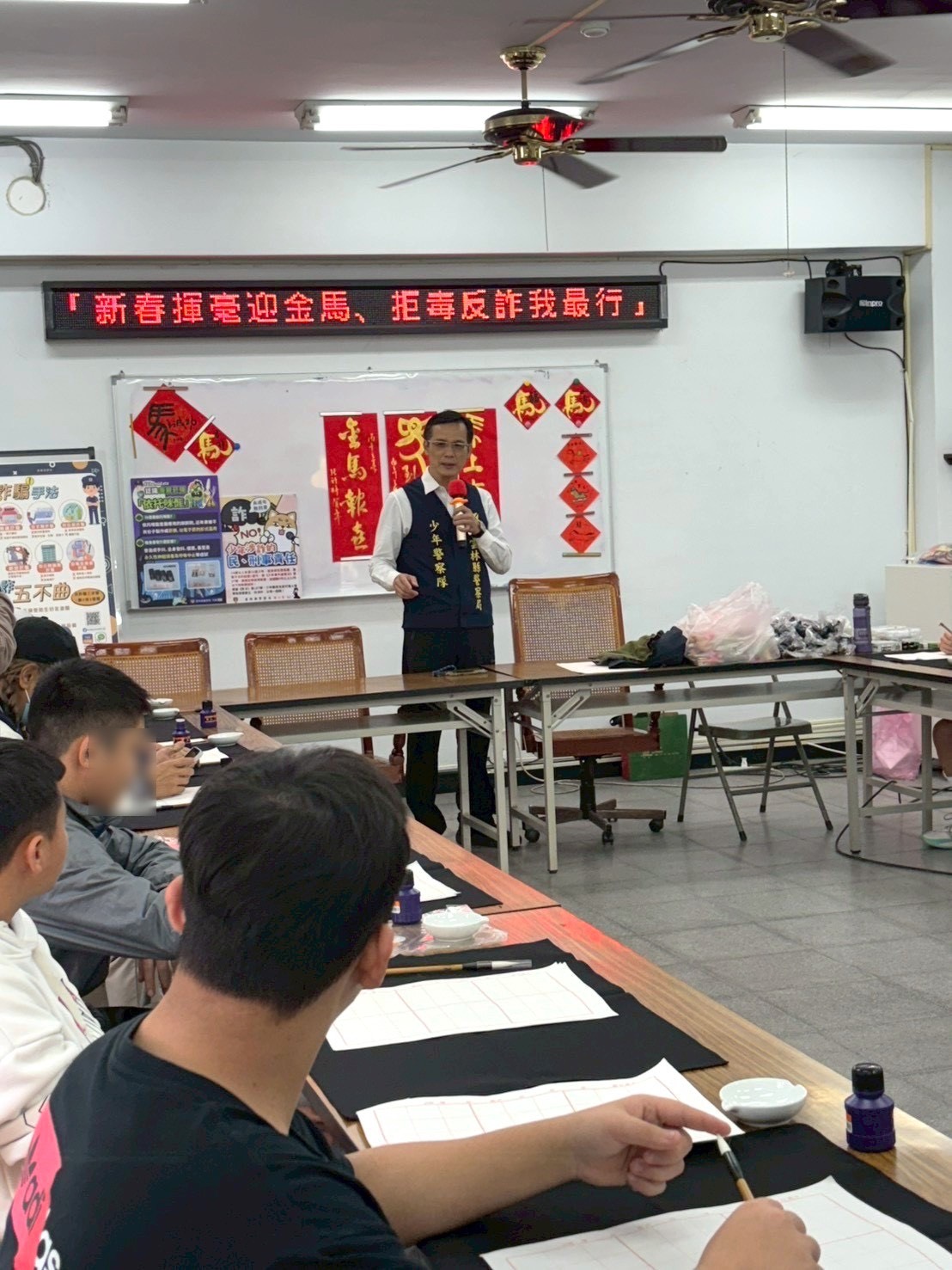 【記者 蘇峯毅/雲林 報導】寒假期間為少年偏差行為與詐騙誘因的高風險時段,雲林縣警察局少年警察隊攜手少年輔導委員會,於1月29日辦理新春揮毫暨犯罪預防宣導活動,透過寓教於樂方式,加強少年拒毒、防詐與防賭觀念,展現警方寒假守護少年不間斷的決心。