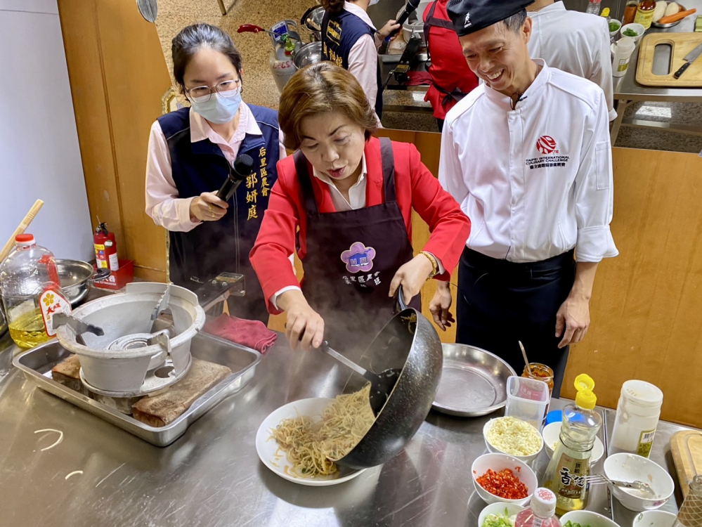 活動現場氣氛熱絡,楊瓊瓔更換上圍裙,化身「阿瓔師」,在全國大飯店名廚指導下,使用后里當季盛產的馬鈴薯,親自示範創意料理「螞蟻上『薯』」,以推廣「吃當季、食在地」的食農理念。