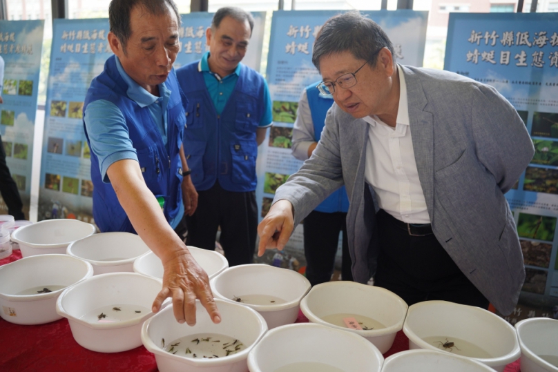 農業處長傅琦媺提到,透過爭取農業部林業及自然保育署補助執行「新竹縣綠網關注物種分布調查」計畫,於去(113)年執行已第六年,於去年計畫補助110萬1000元(中央補助93萬6000元、縣府配合16萬5000元),由新竹縣生態休閒發展協會持續執行縣境內蜻蜓目物種及水中稚蟲(水蠆)分佈調查及圖檔拍攝等工作。
