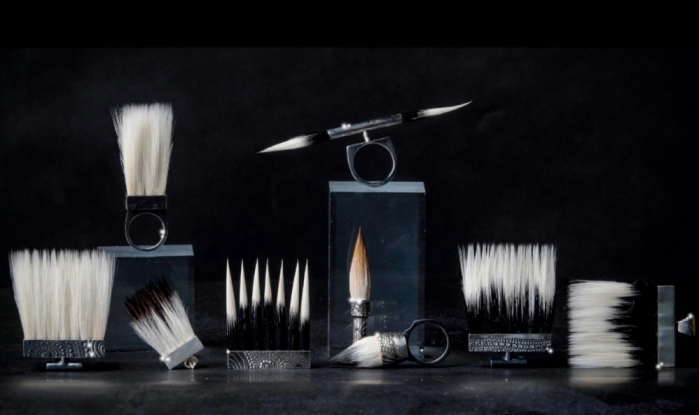 《若山水》飾品系列,以回收毛筆結合金屬傳遞綠色工藝的再生之美,不只是飾品,更是一場微型東方山水意象的心靈旅行。