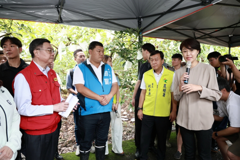 隨後,卓院長也到水里玉峰村香蕉園了解受損情形,目前農業部已主動公告南投縣可現金救助的農損品項為9項,包括蔬菜、香蕉、火龍果及溫室網室設施等;許縣長也特別向卓院長與陳部長提到,竹筍是南投縣4大重要產業之一,竹山這次受損也相當嚴重,建議農業部將竹筍列入補助。目前初步統計南投縣的農業受損金額大概在2,500萬元,但仍在統計彙整中,希望中央能夠再給農民、地方一些的時間彙整提報,並能盡量放寬各種的農業受損品項。