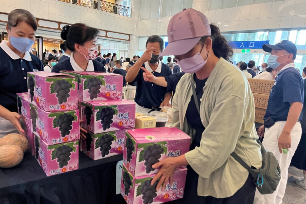 急診科主任李冠儀獻唱「一家人」,用歌聲廣邀大眾募心募愛。熱鬧的惜福市集吸引不少來院大德,也有主動響應募愛活動的病人家屬。苗栗卓蘭的曾女士家種植葡萄,他和愛心友人一同捐贈四十盒葡萄募愛。曾女士表示,不忍心南部同樣是看天吃飯的果農,深深體會農友受災的心情。他也感恩台中慈濟醫院十年前救回大腸癌的丈夫,所以來盡綿薄之力幫助災民早日恢復日常生活。