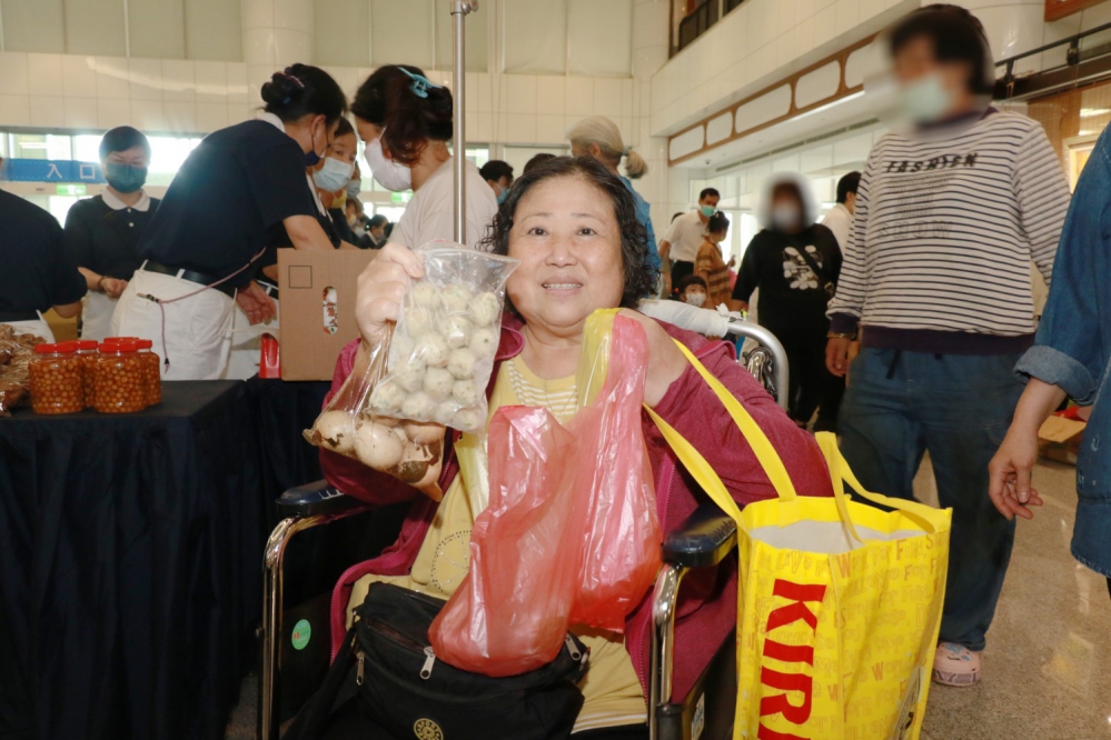 坐輪椅的田小姐表示「剛好回診,看到市集停下來逛逛,買需要的東西。」手上、輪椅掛滿一袋袋食品與日用品,臉上滿是喜悅,直說:「能買、又能幫助災民很有意義!」。慈濟志工、全院同仁、病友與家屬的熱情投入,讓市集不僅物資流通,更成為匯聚愛心、實踐共善的溫暖活動。