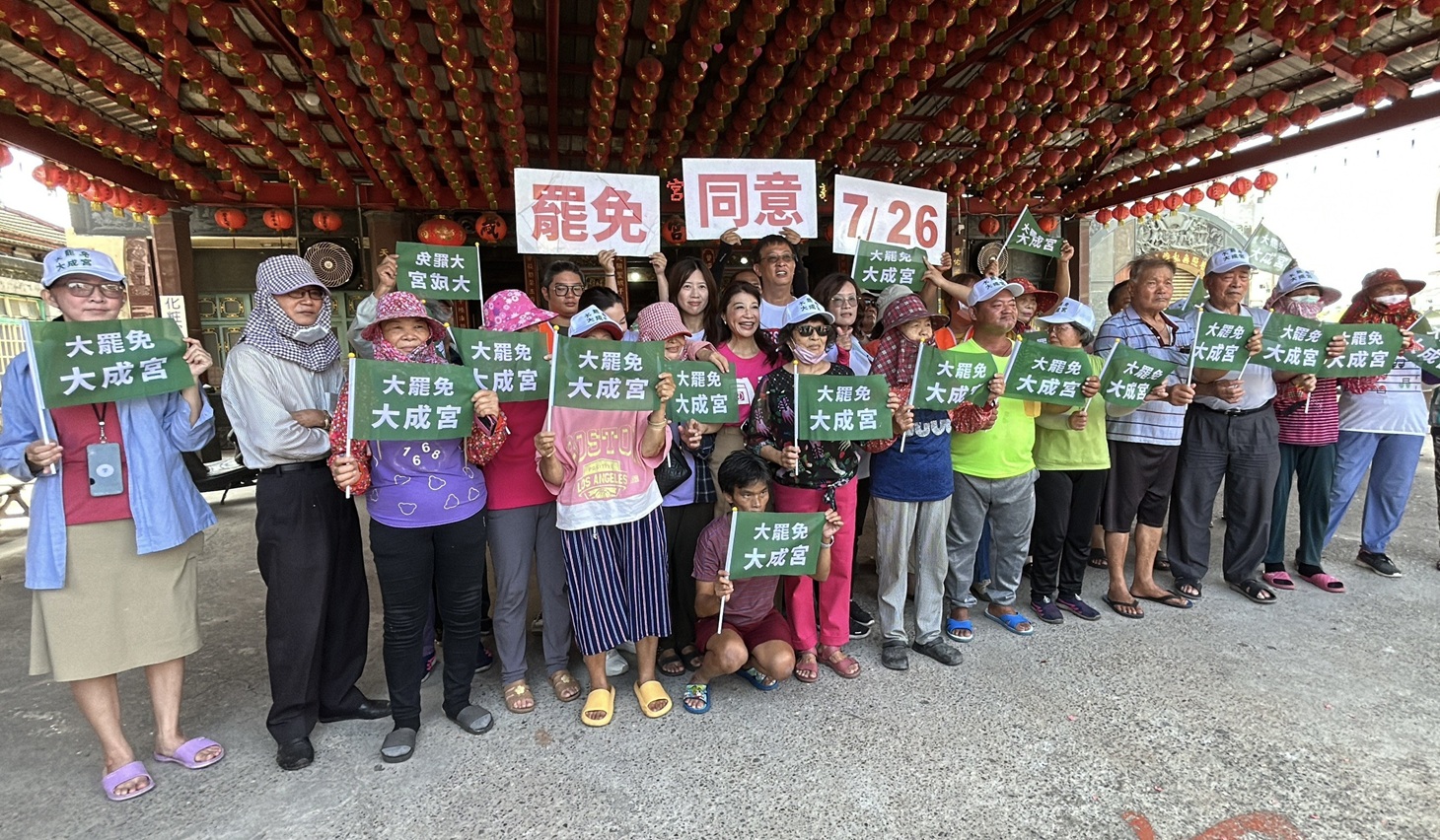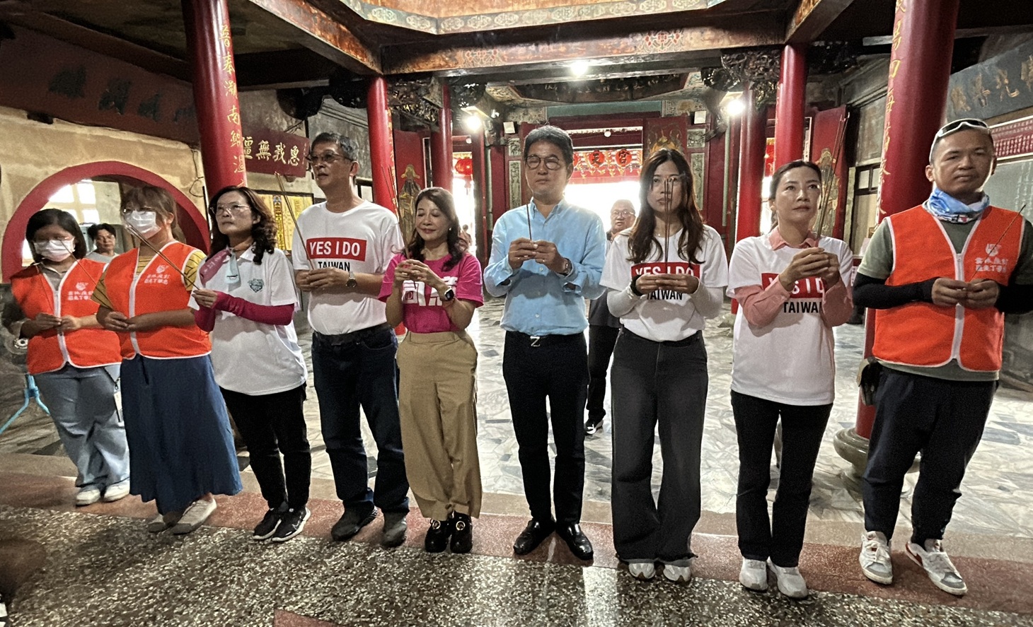 立委林楚茵陪同拔丁行動的罷團首先赴雲林四湖萡子寮普天宮參拜。