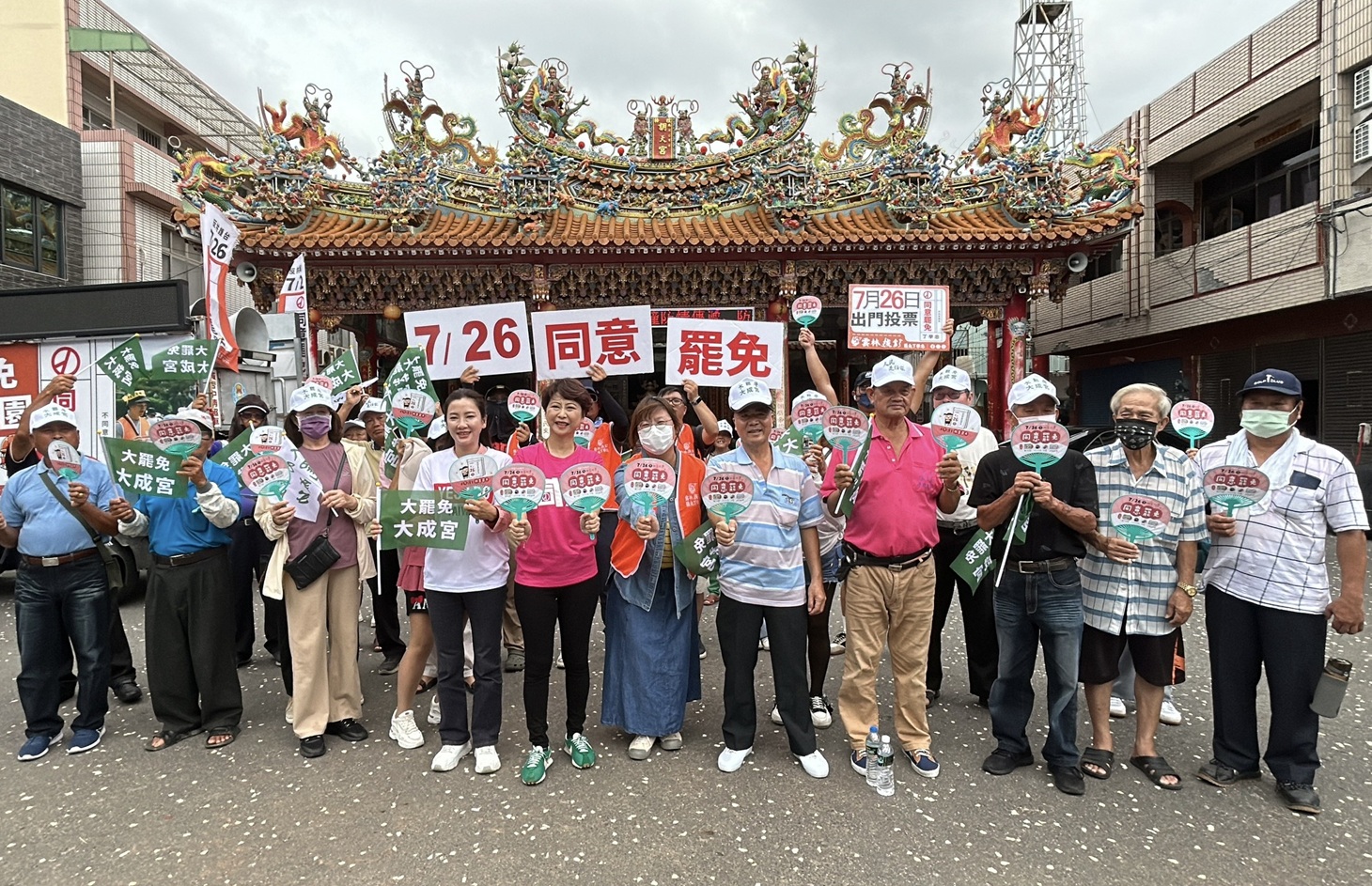 立法委員陳亭妃今親赴雲林口湖鄉,與罷免團隊合體展開車隊掃街行動。