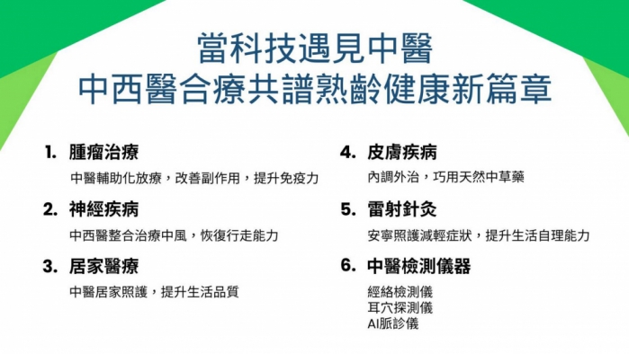 【記者張原銘、張皓傑台中報導】超高齡社會來臨,臺灣醫療體系面臨全方位轉型,第二屆高齡健康產業博覽會八月八日將登場,台中慈濟醫院中醫診斷科主任伍崇弘透過「名醫On Call」指出,當科技遇見中醫後的中西醫整合醫療,已在癌症輔助治療、神經系統疾病復健、雷射針灸、居家醫療與高齡照護等領域展現卓越成果。