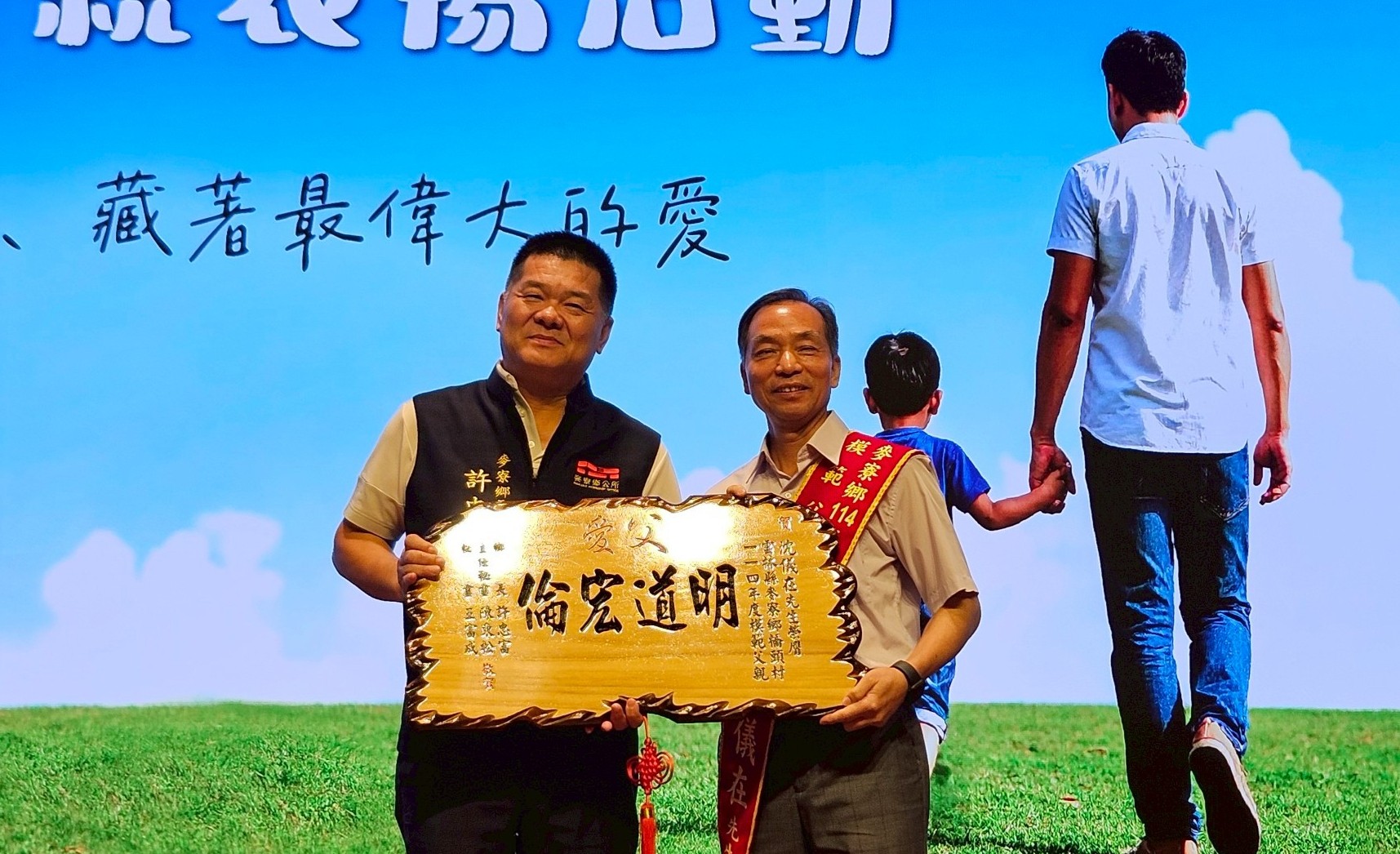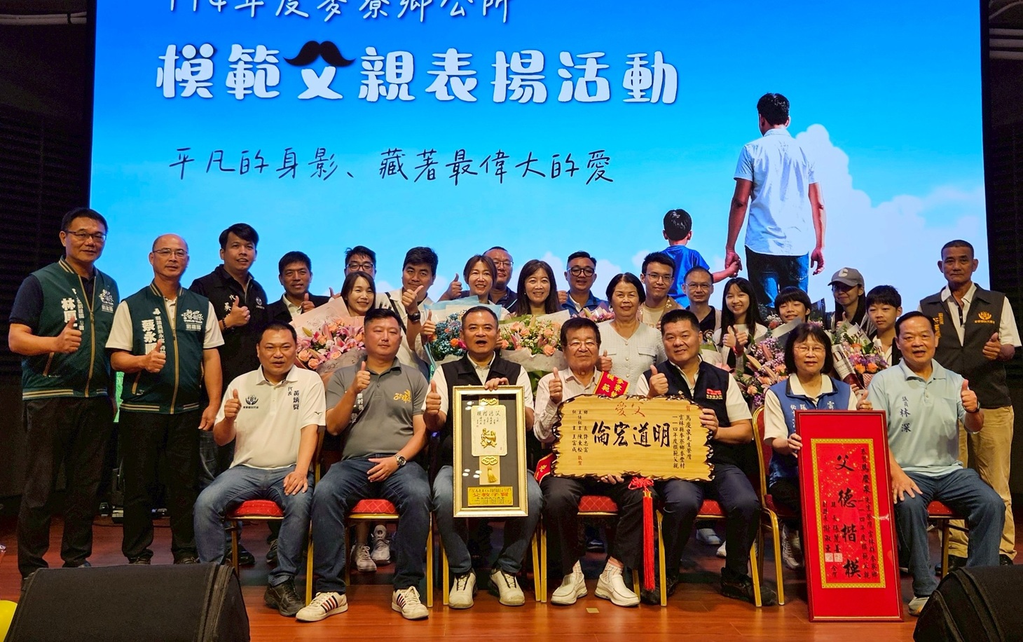 鄉長許忠富親自為得獎者頒發紀念匾額,感性致詞中表示:「父親是家庭最堅實的後盾,他們用沉默與行動守護一家人,也是社會穩定的重要力量。」他強調,每位模範父親背後都有一段令人動容的生命故事,值得全鄉敬重與學習。
