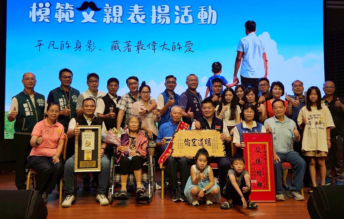 其中最受矚目的縣級模範父親,由來自橋頭村的沈儀在先生代表。他一生勤奮樸實,為了養育子女甘願付出一切,無怨無悔地扛起家庭重擔。在他細心教養下,子女各自成家立業,家庭和樂幸福。沈先生同時也是社區的熱心志工,長年投入公益、助人為樂,其品格高尚、行為典範,深受鄉里愛戴。