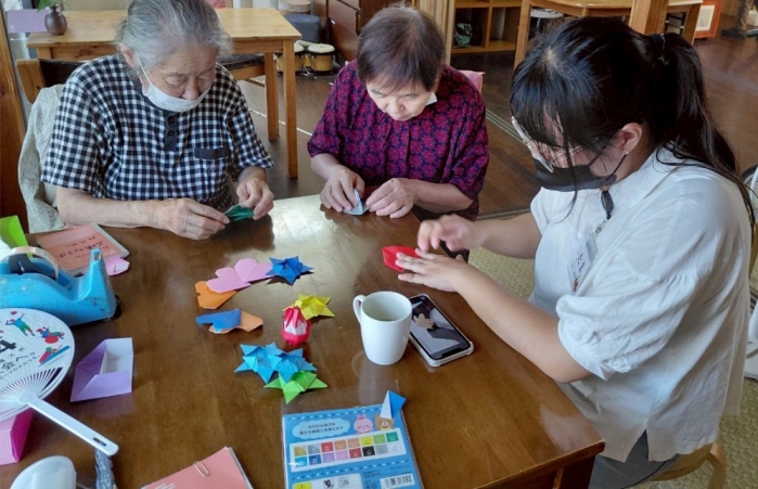 「什麼是照顧?我想讓你感受。」葵照護社長加藤忠相以一句話,點出失智照護的核心精神。他親自導覽無圍牆設計的照護場域,鼓勵學生拋開傳統思維、走進真實生活。學生們在機構陪伴長者料理、清掃、摺毛巾、手作甜點,每一刻互動都強調被需要與互相感謝。日文能力N1級的陳姿穎同學分享:「在葵照護的一天生活當中,最常聽到的就是『ありがとうございます(非常感謝)』,這裡的爺奶因為『被需要』而感受到幸福與價值。」劉姵嘉同學則表示:「過去以為照護是高效率的幫忙,現在體會到真正重要的是陪伴長者完成他想做的事,讓生活有選擇、有尊嚴。」