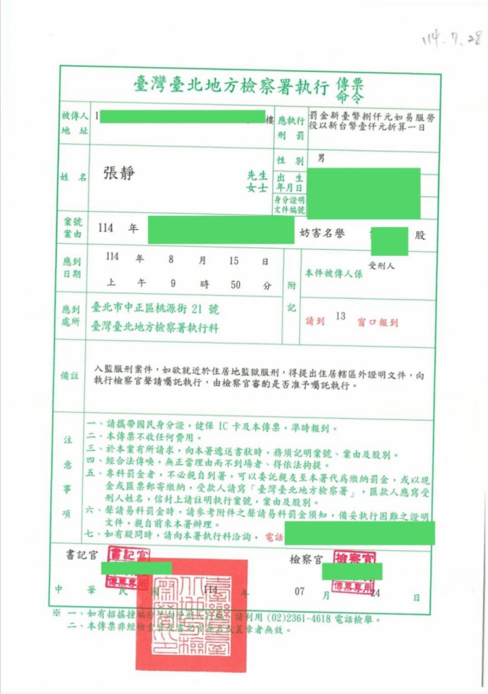 (本報記者/胡語真台北報導)前法官張靜說.我希望藉著我的入獄,能讓不滿台灣司法墮落與下流的人民,有一個集體發疏與控訴的管道,讓台灣司法與檢調部門,再次看到台灣人民的心聲,不要自我良好的認爲台灣司法只是人民不懂或誤解,人民的眼睛是雪亮的。古有萬民傘,用來褒揚好官,今有簽名簿,用來見證惡官另外一個狀況發生,另外彭文正自訴前總統府發言人張惇涵的妨害名譽案,台北地院本定8月15日上午10點開審理庭,因我當日上午9:50要到台北地檢署執行科報到服刑,所以具狀聲請改期,成為歷史上律師服刑外借出庭的頭一次.台北地院改定8月18日上午10點開審理庭,並告知一定會借提出庭為彭文正教授辯護。