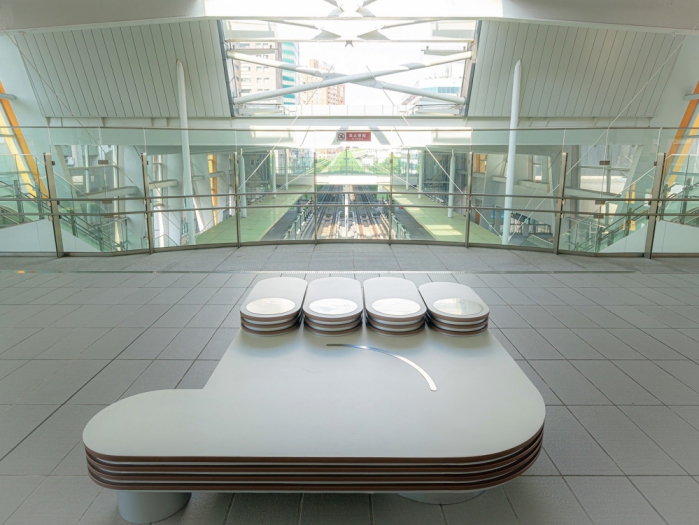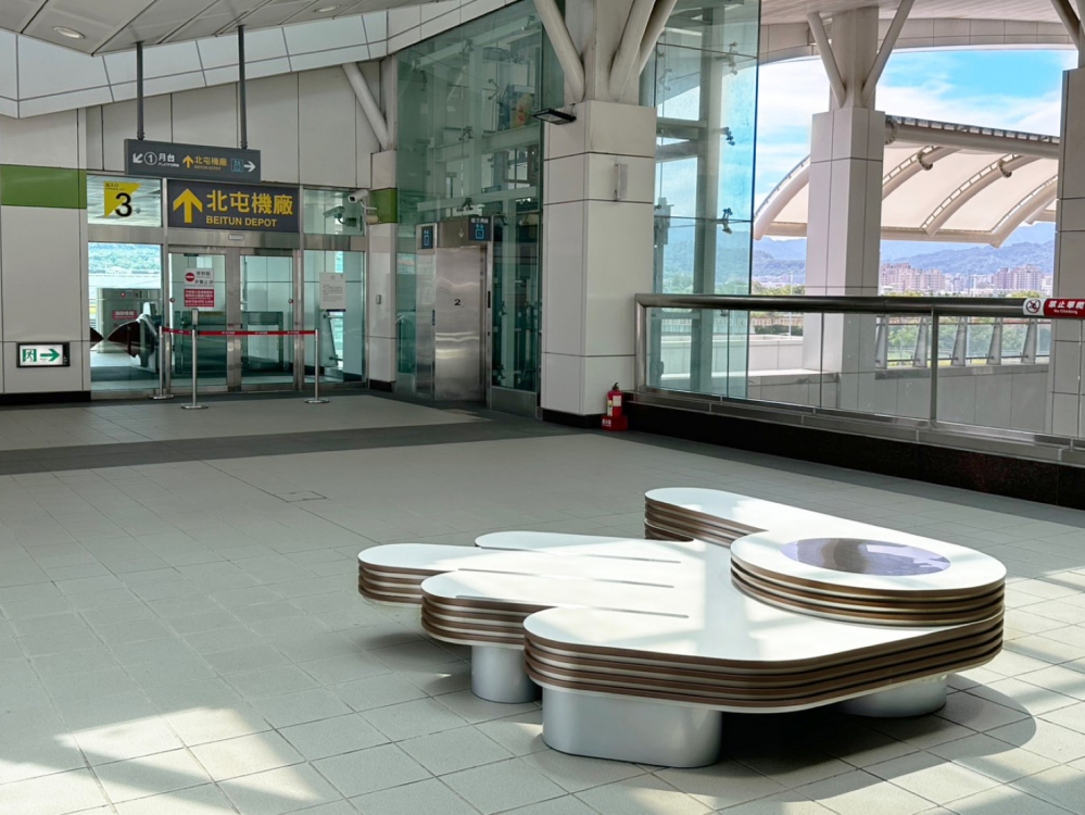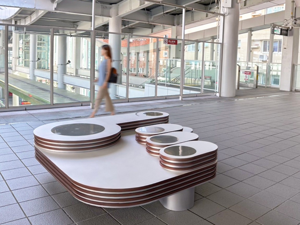 中捷公司說明,藝術家具不僅可傳達設計的邏輯與美學教育的意涵,更具備實用功能。此次創作以「點、線、面」為語言,不僅提升空間辨識度,也讓旅客在捷運站日常的行走與停留中,自然地與藝術發生碰撞,使藝術不再只是觀賞的對象,更是一種日常陪伴與溫柔點綴。